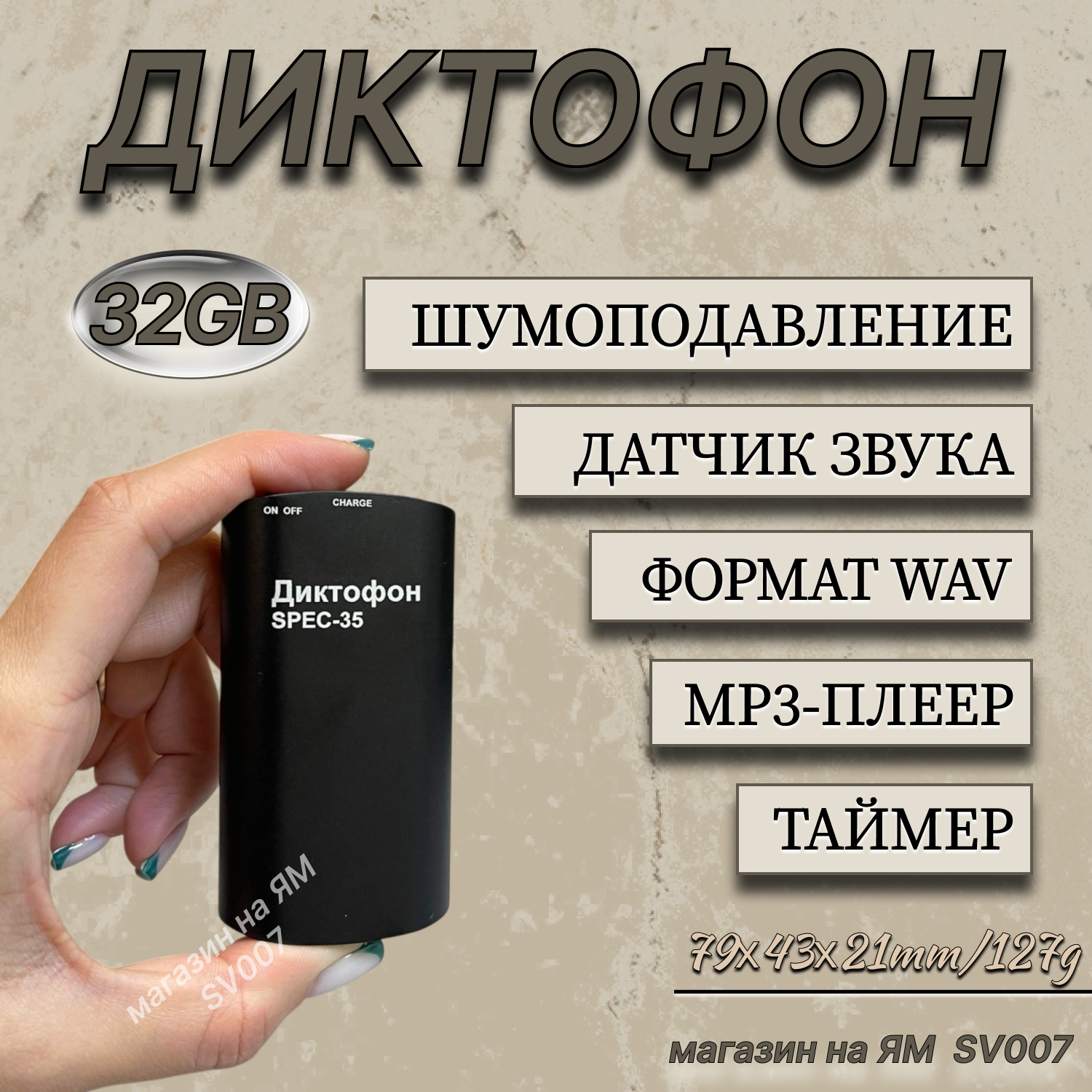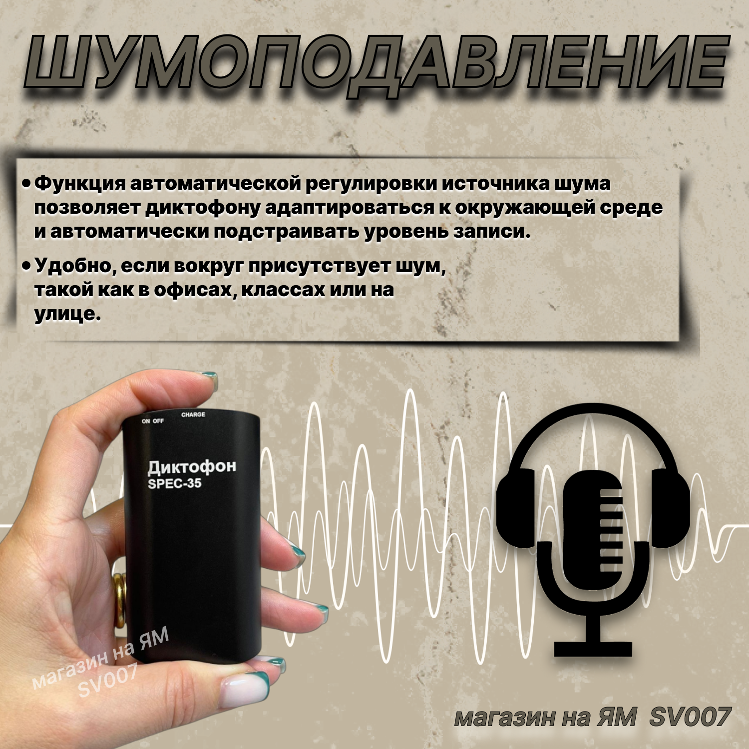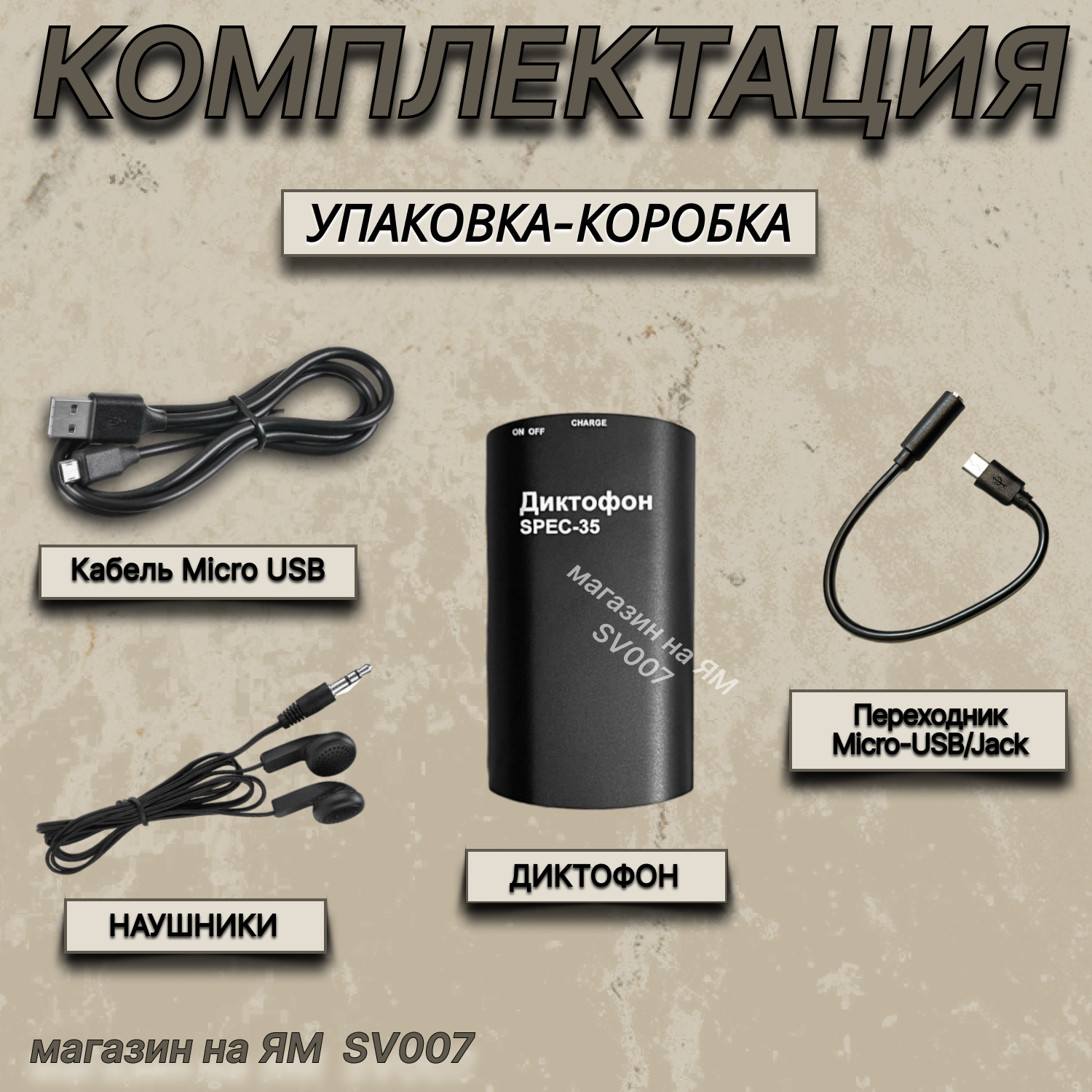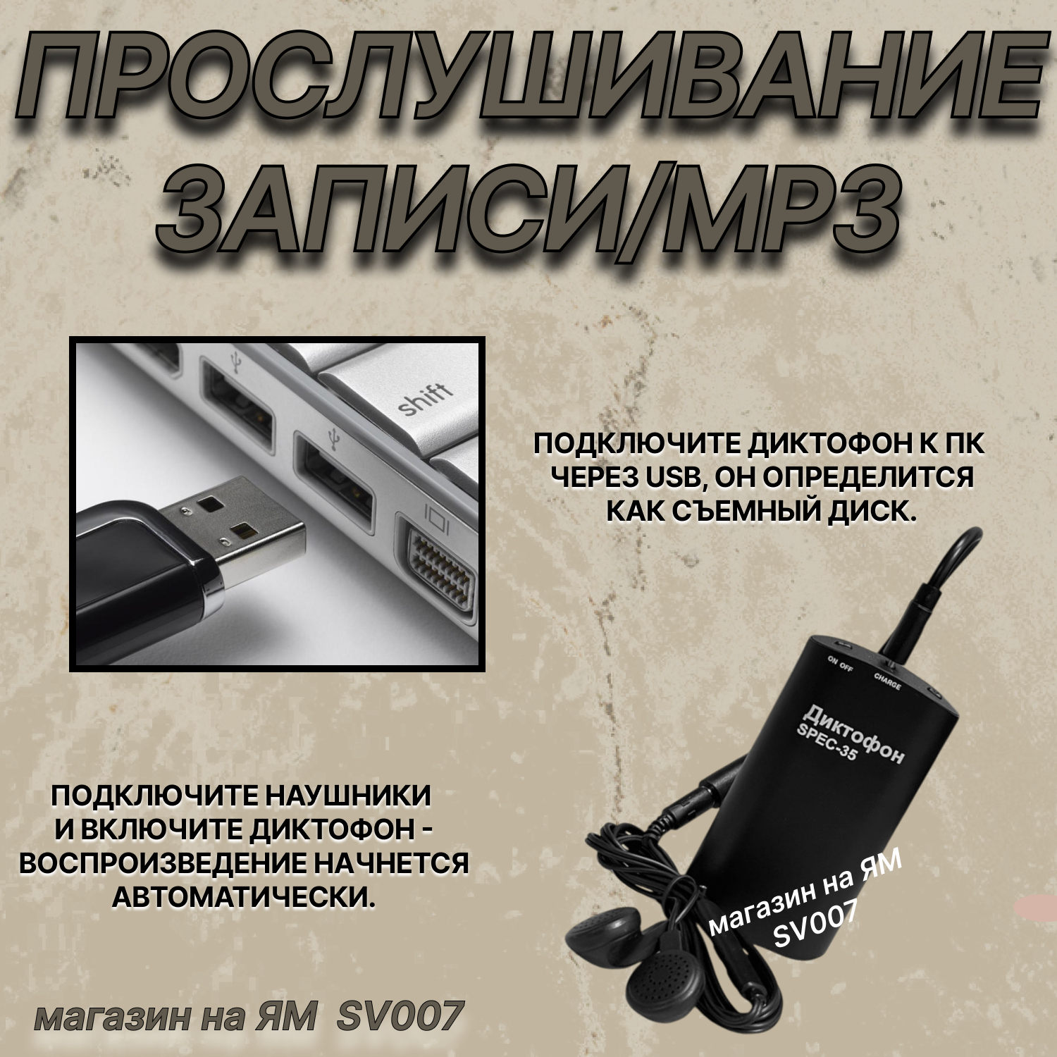 Миниатюрный диктофон SPEC-35 5000 mAh, до 536 часов записи, датчик звука, запись и сохранение одной кнопкой интересное: