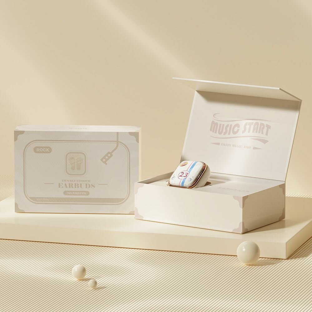 Беспроводные наушники ROCK Retro Style TWS Earphone Clamshell бежевые