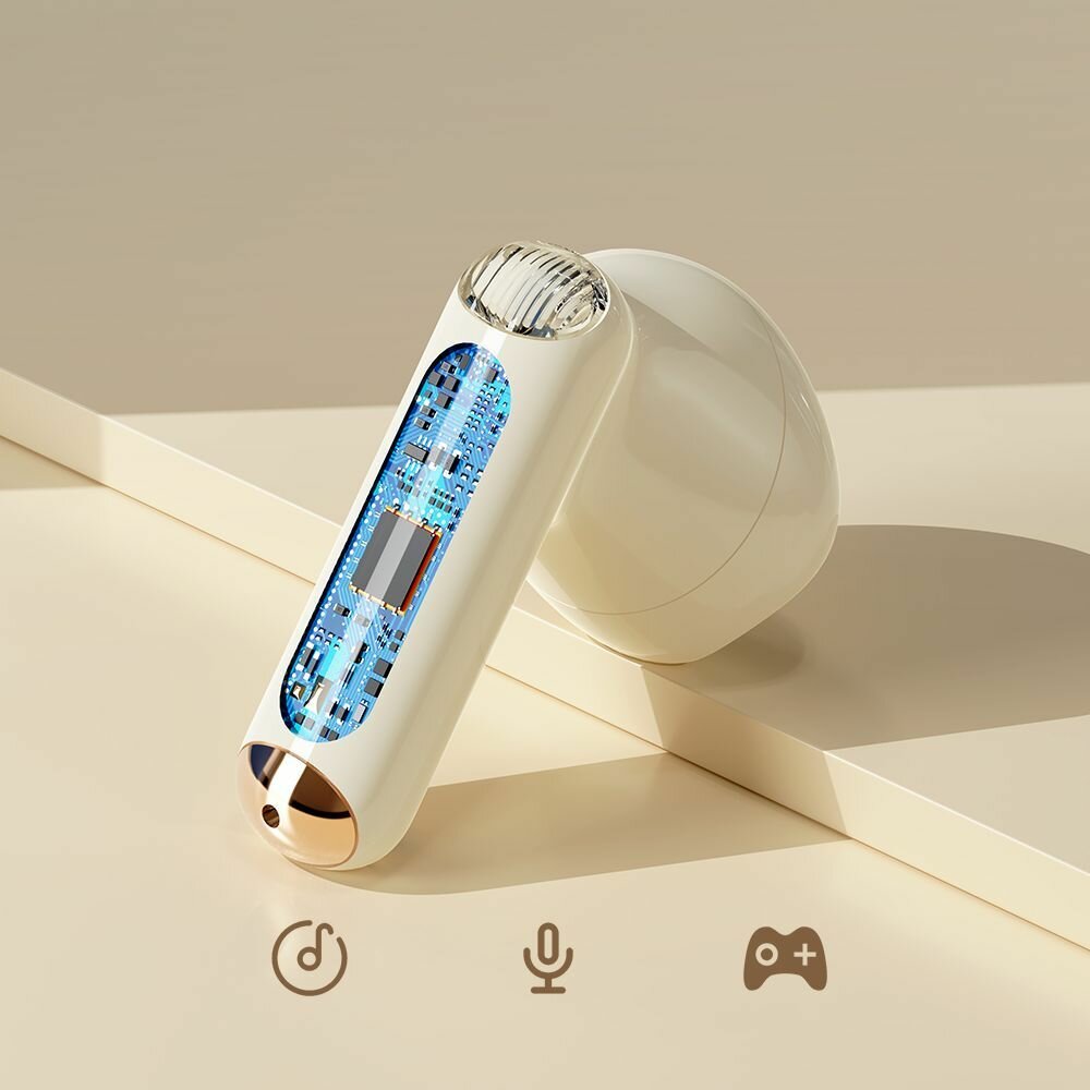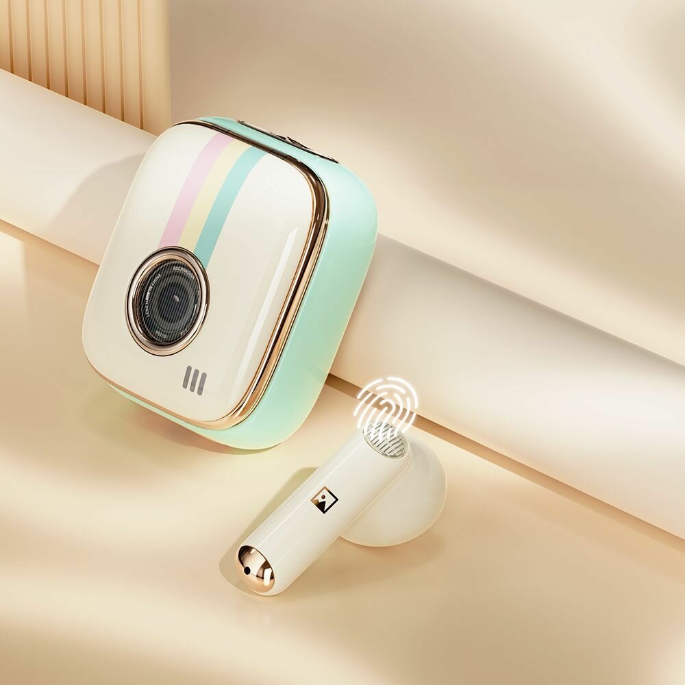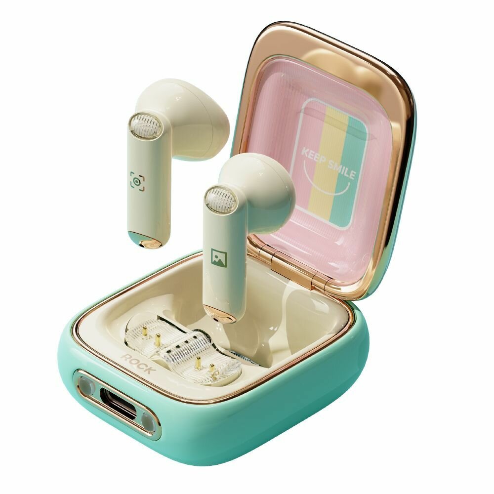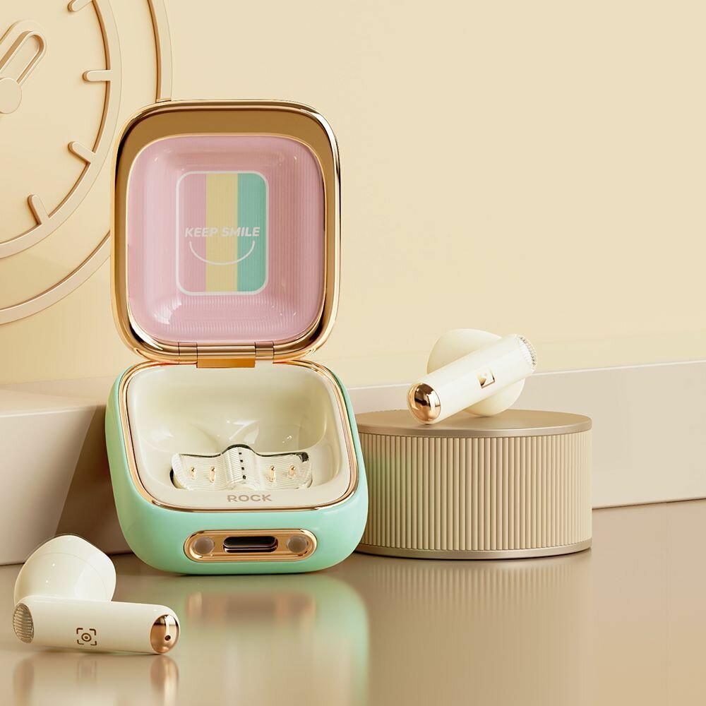 Беспроводные наушники ROCK Retro Style TWS Earphone Clamshell бежевые