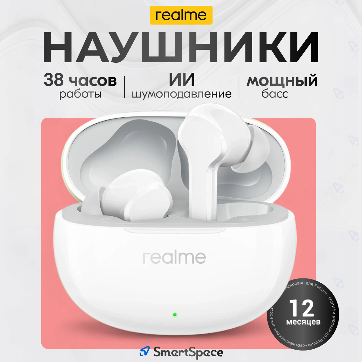Realme Buds Air 6 - CN версия, настоящие беспроводные наушники с активным шумоподавлением до 50дБ + чехол и шнурок в подарок!