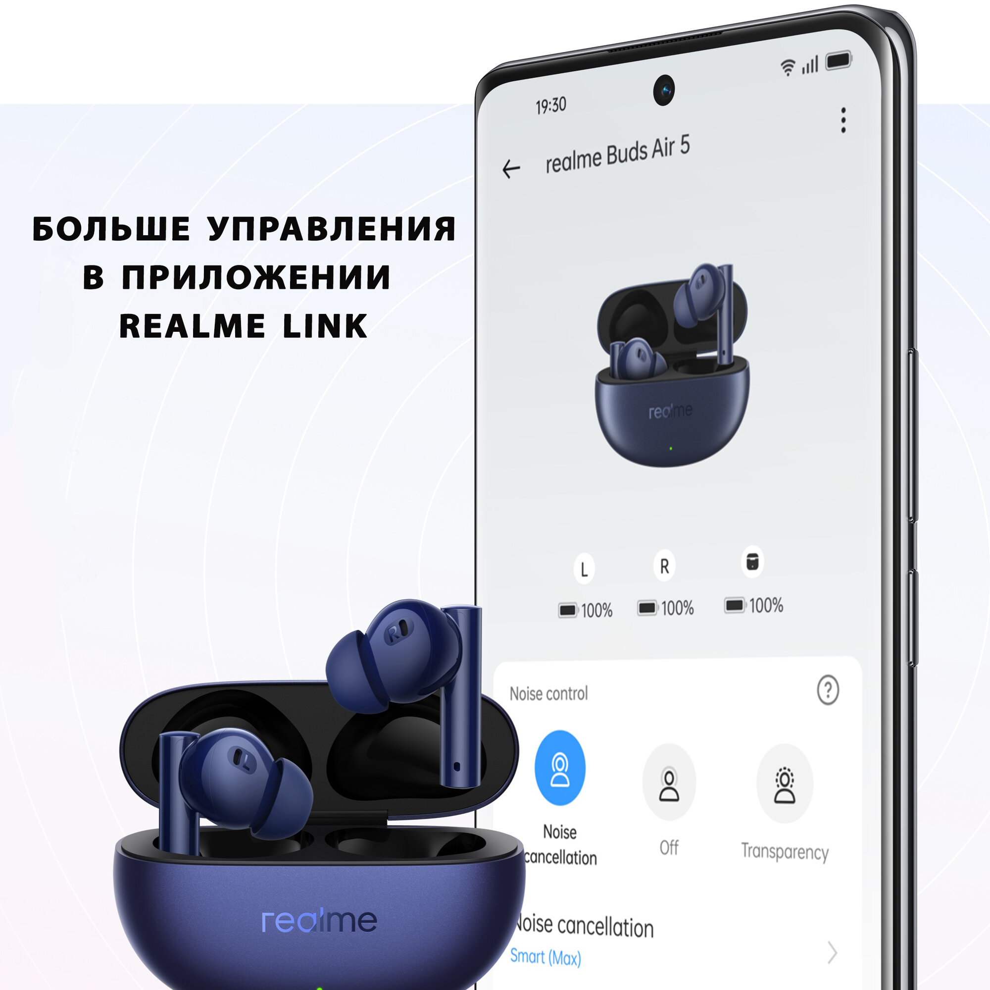 Настоящие беспроводные Bluetooth-наушники Realme Buds Air5 имеют шумоподавление на 50 дБ и сверхдлительное время автономной работы.