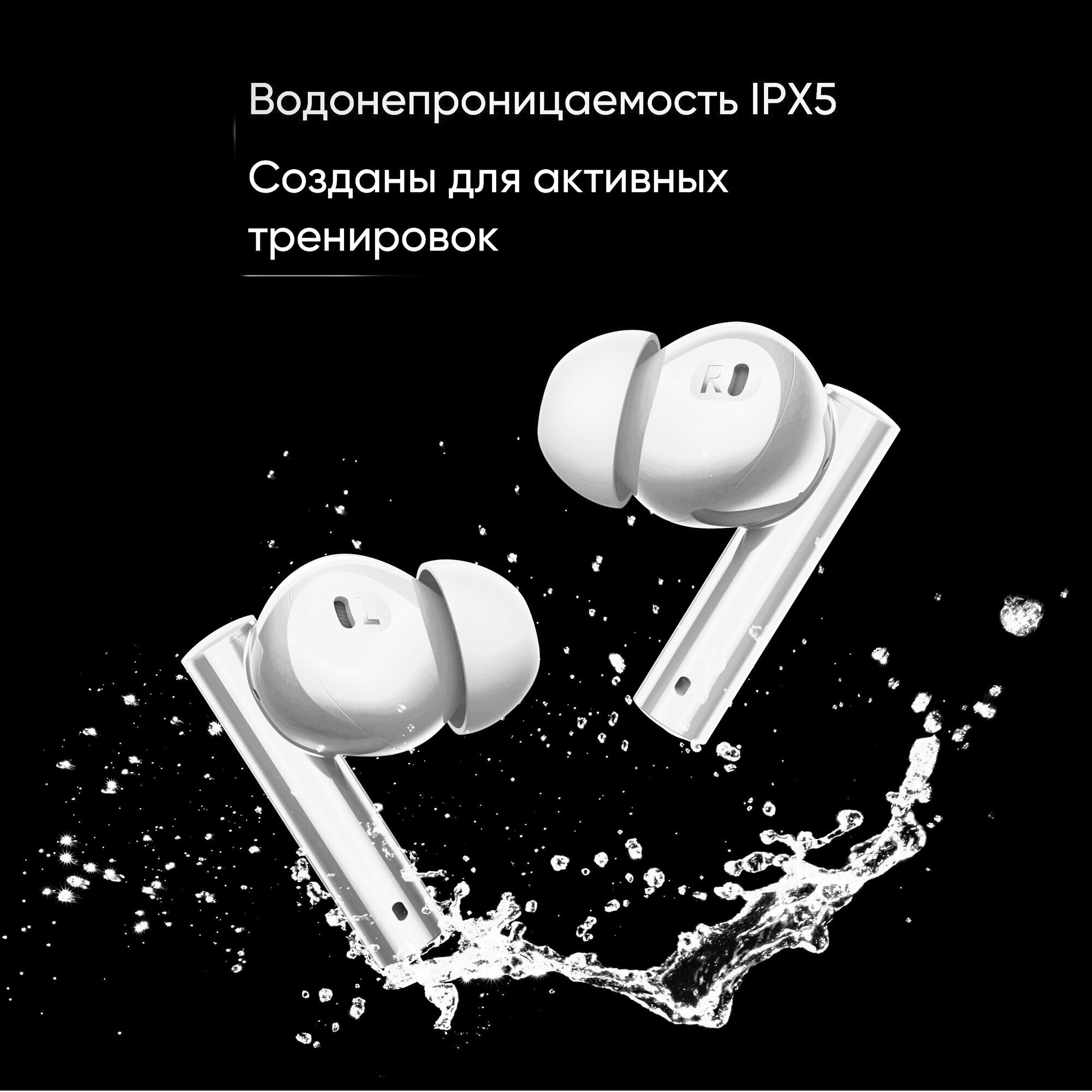 Беспроводные наушники Realme Buds Air 5 белый White, шумоподавление ANC, влагопылезащита IP54