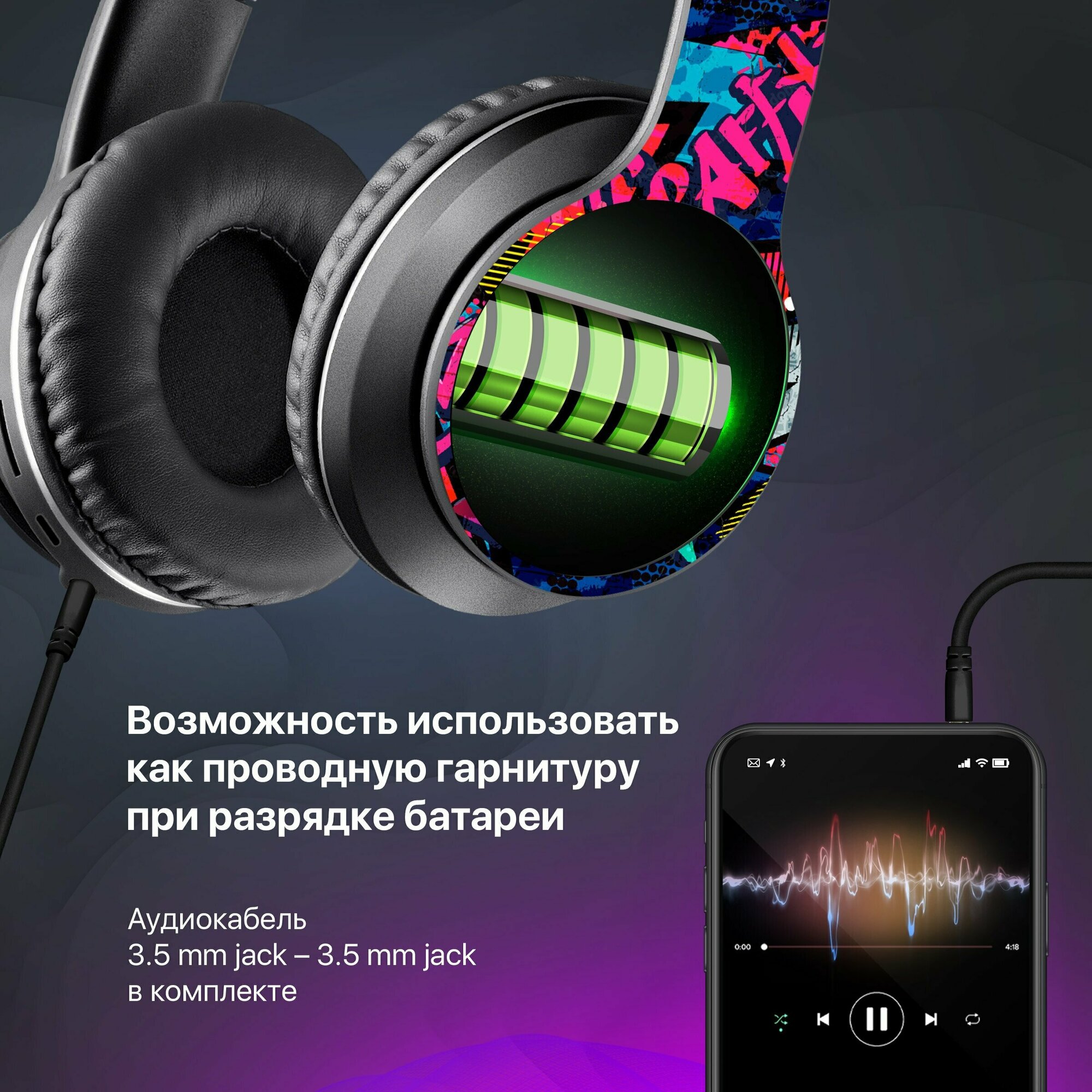 Наушники Defender FreeMotion B595 беспроводные, с микрофоном, Micro-USB, Bluetooth, граффити