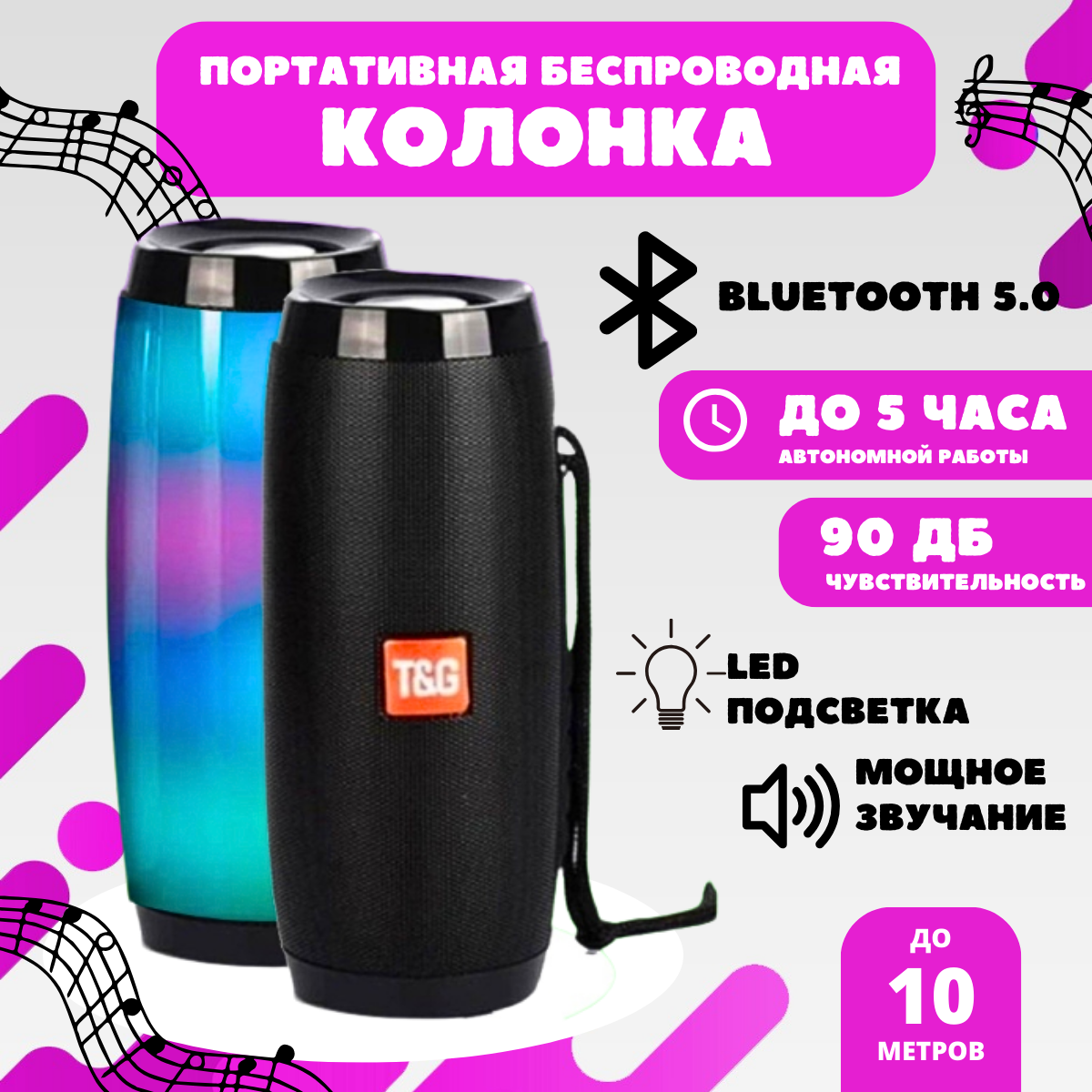 Колонка Bluetooth TG-157 TG, с LED-подсветкой, FM-радио, черная интересное: