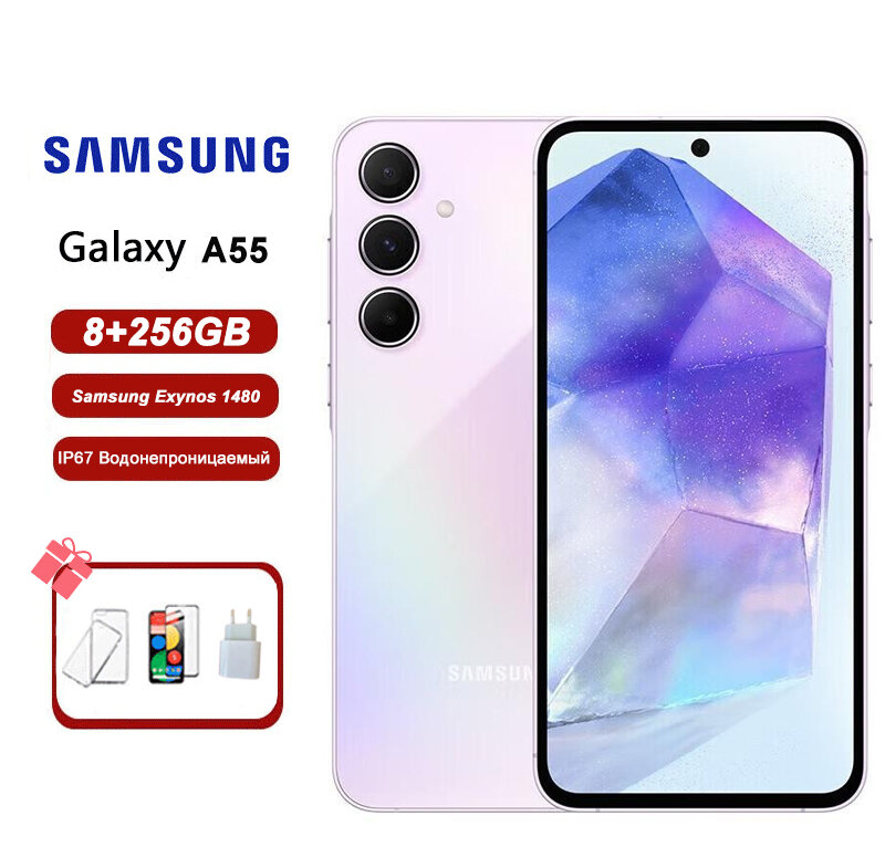 Смартфон Samsung Galaxy A55 с восьмиядерным процессором, 5,7-дюймовым дисплеем, 1380 Гц, 6,4 мАч, Add 45W EU Charger, Samsung, Galaxy A55, Смартфон, Фиолетовый, 8ГБ, 128ГБ, china, новый