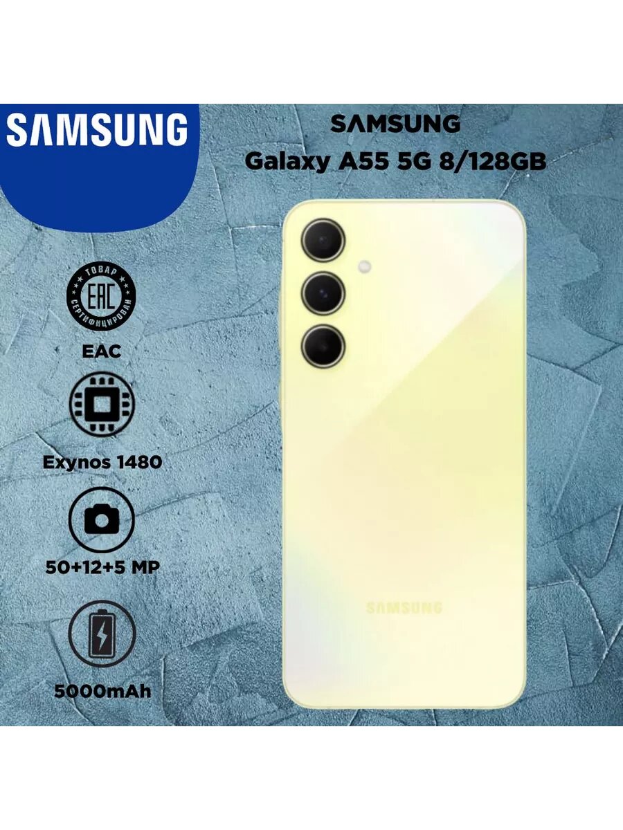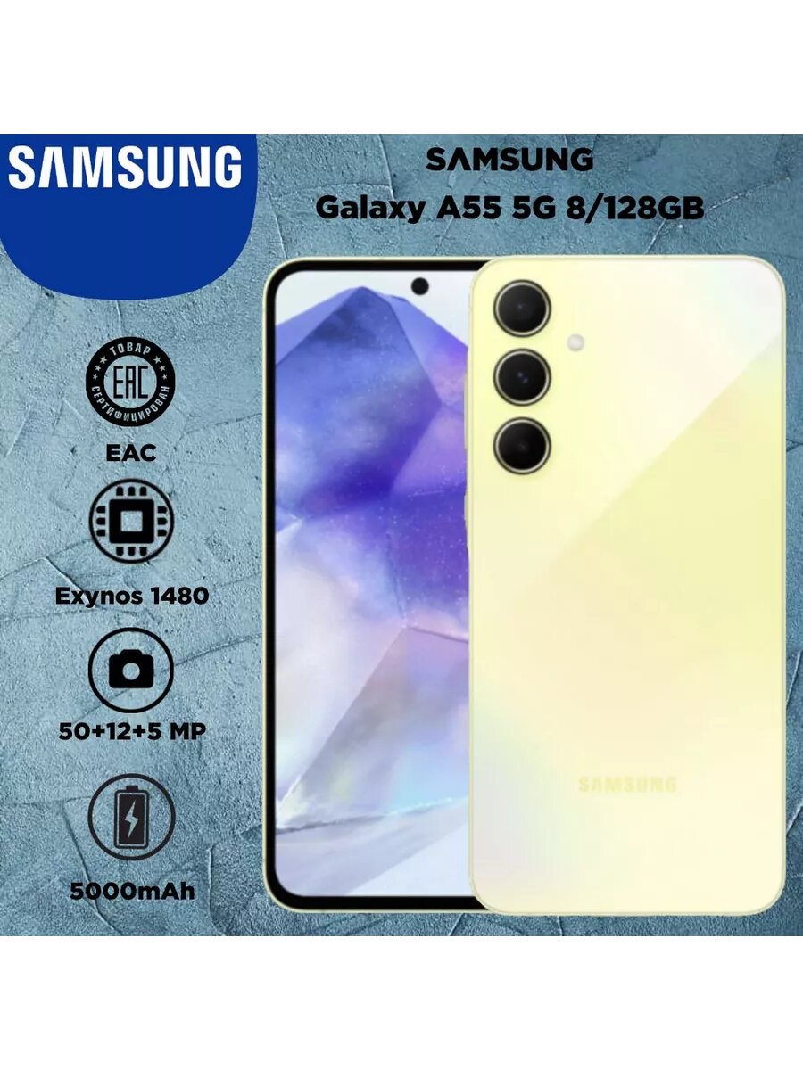 Смартфон Samsung Galaxy A55 5G 8/128 ГБ, Dual: nano SIM + eSIM, lemon