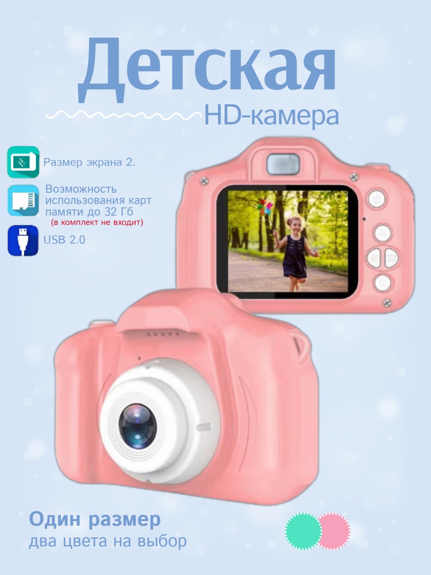 Детская камера, розовая, 1080p, с играми, 600mAh, USB, microSD, 2.0"
