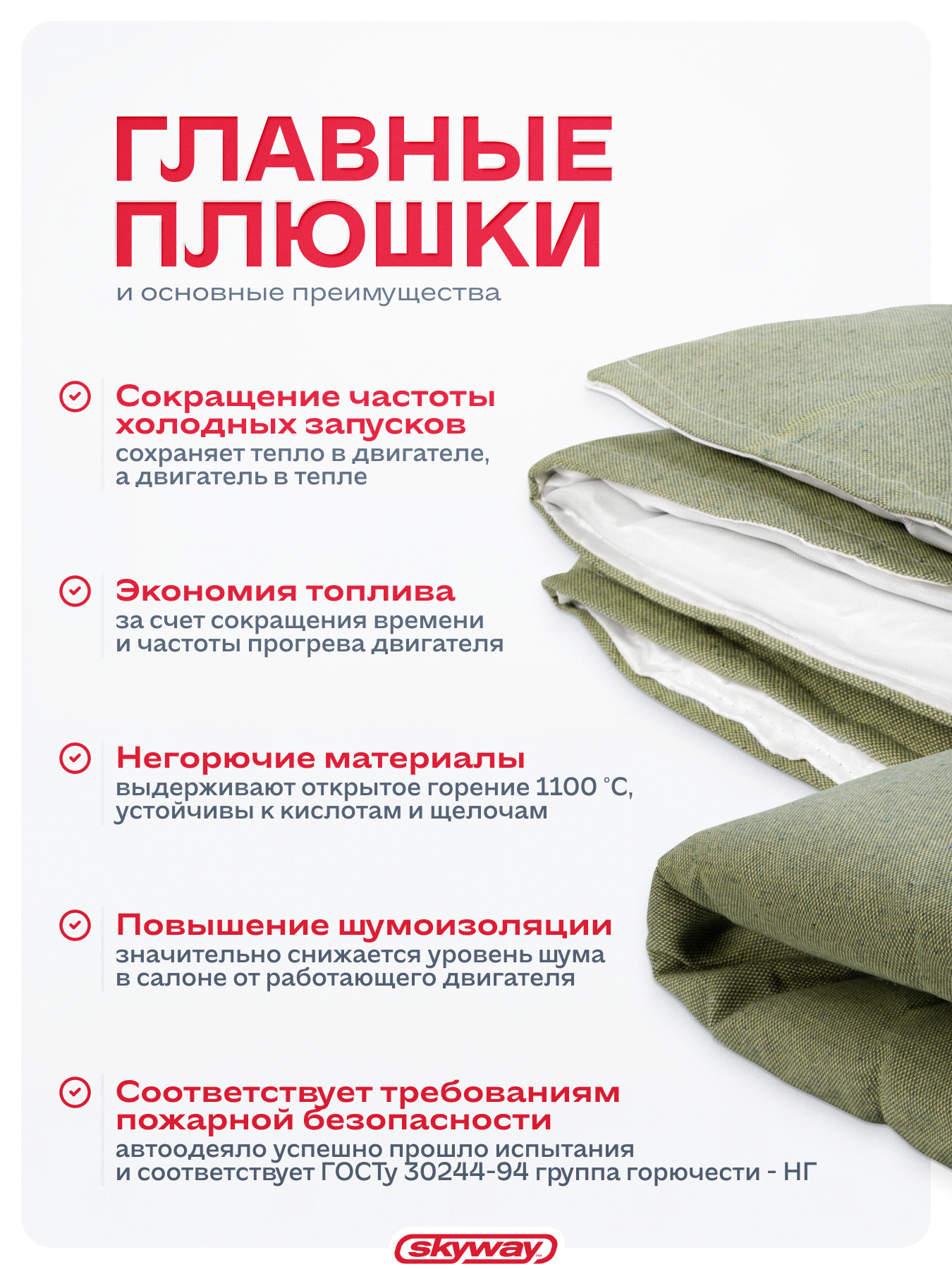 СохранитьАвтоодеяло для двигателя "SKYWAY" ASH-142B, размер 142 x 88 см, толщина 5 см интересное: