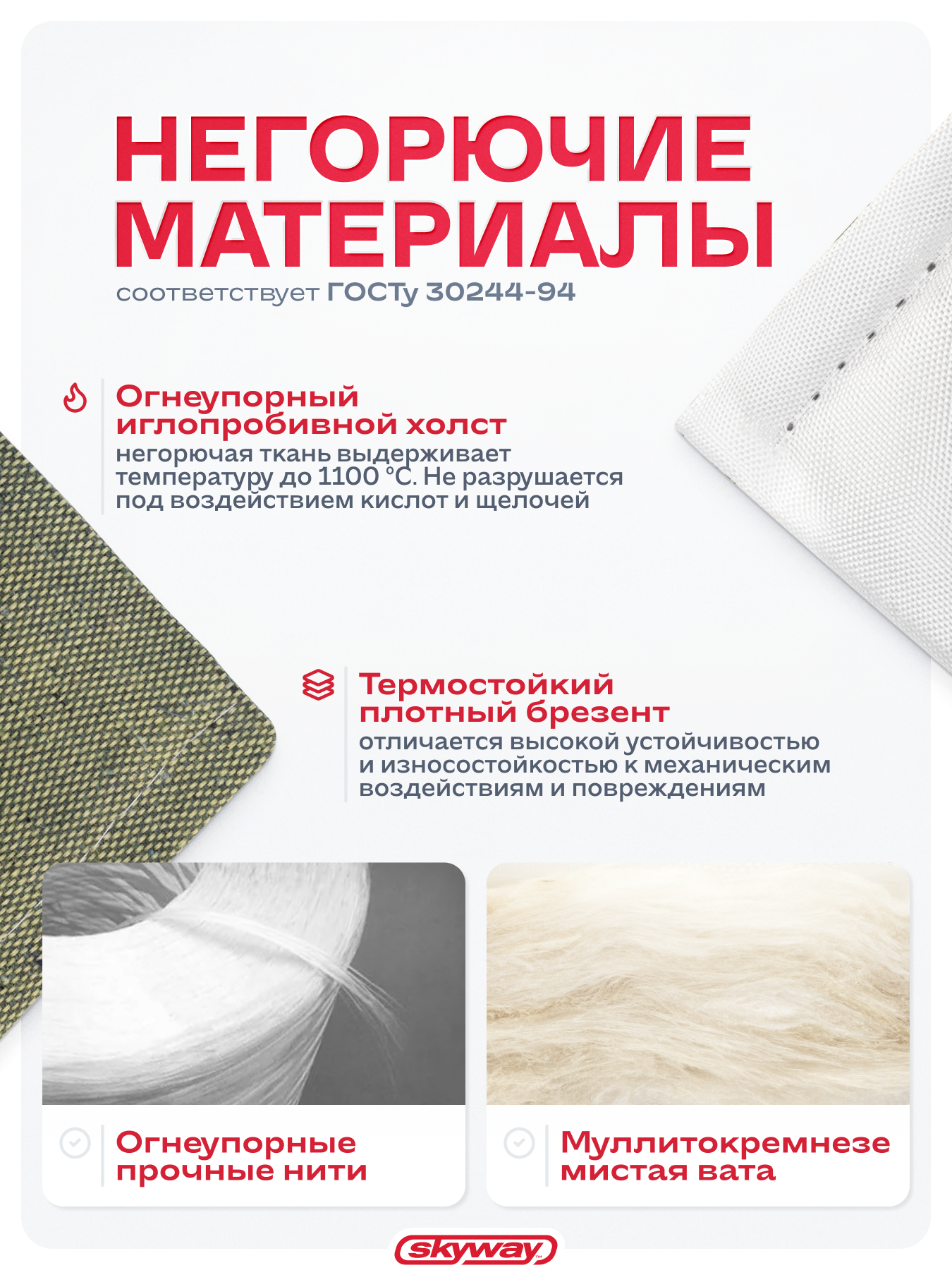 SKYWAY ASH-128B Утеплитель огнестойкий Skyway 128 х 70 см стекловолокно/брезент