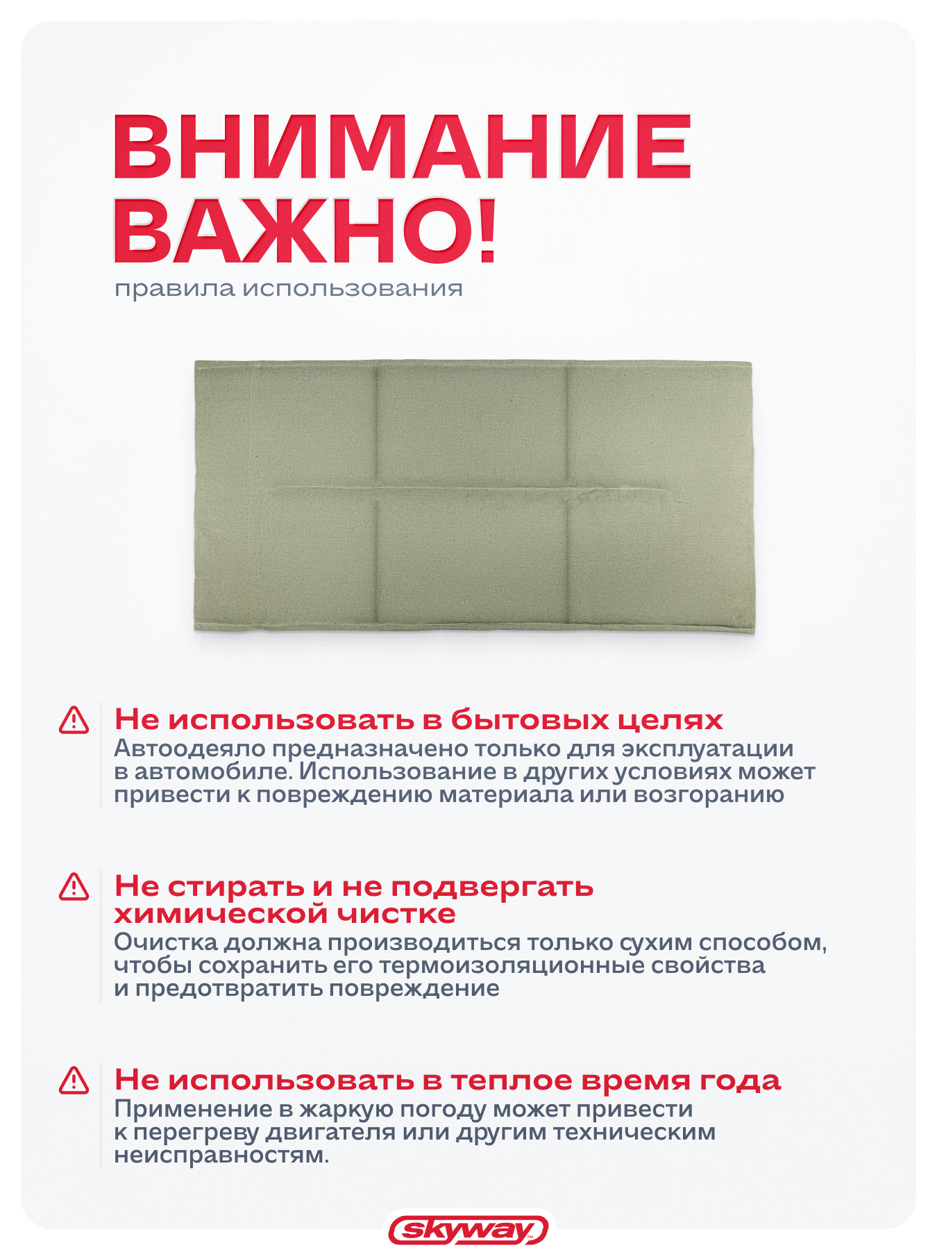 Ниже Вы можете прочитать отзывы на Автоодеяло "SKYWAY" для двигателя, размер 130 х 80 см, толщина 5 см, ASH-130B, ознакомится с подробными характеристиками, посмотреть интересные обзоры и фотографии на Автоодеяло "SKYWAY" для двигателя, размер 130 х 80 см, толщина 5 см, ASH-130B.