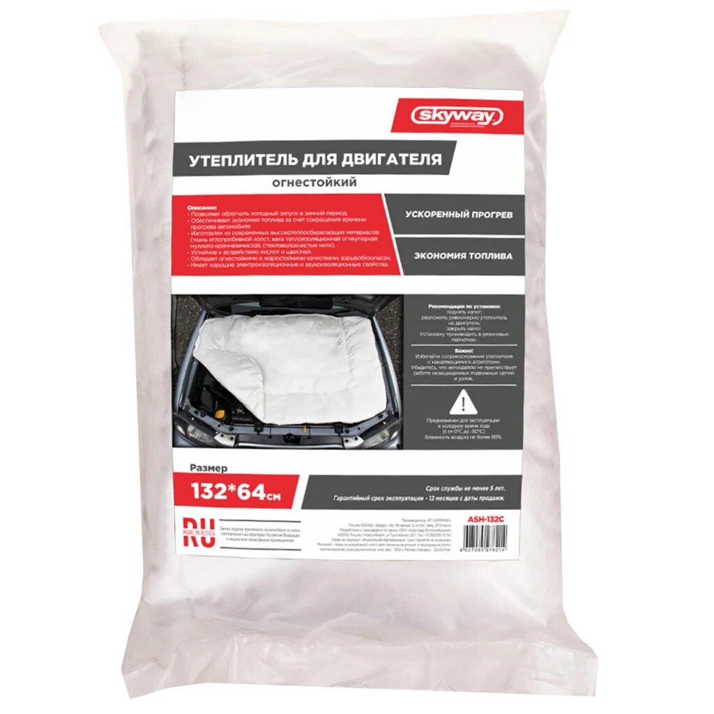 Автоодеяло SKYWAY для двигателя, размер 132*64 см, толщина 5 см, ASH-132C