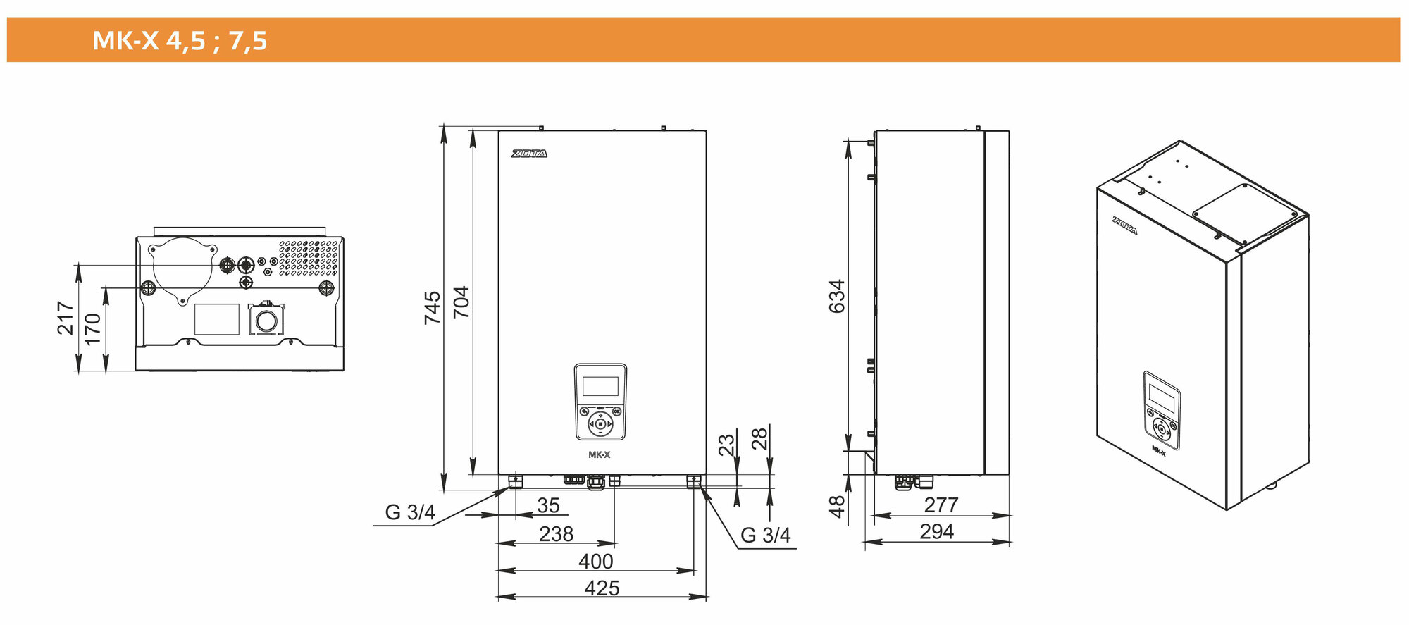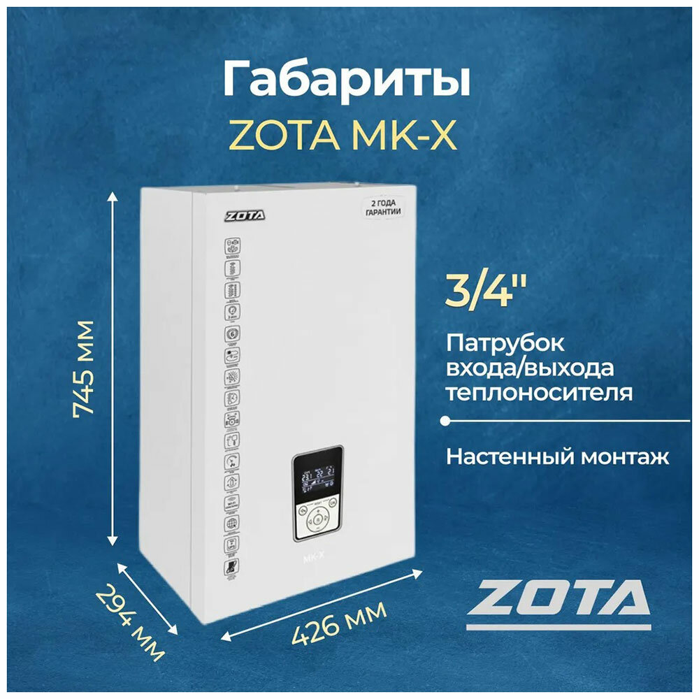 Котел электрический настенный ZOTA MK-X - 6 кВт (220/380В, 3 ступени мощности)