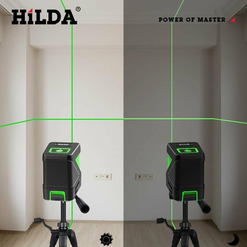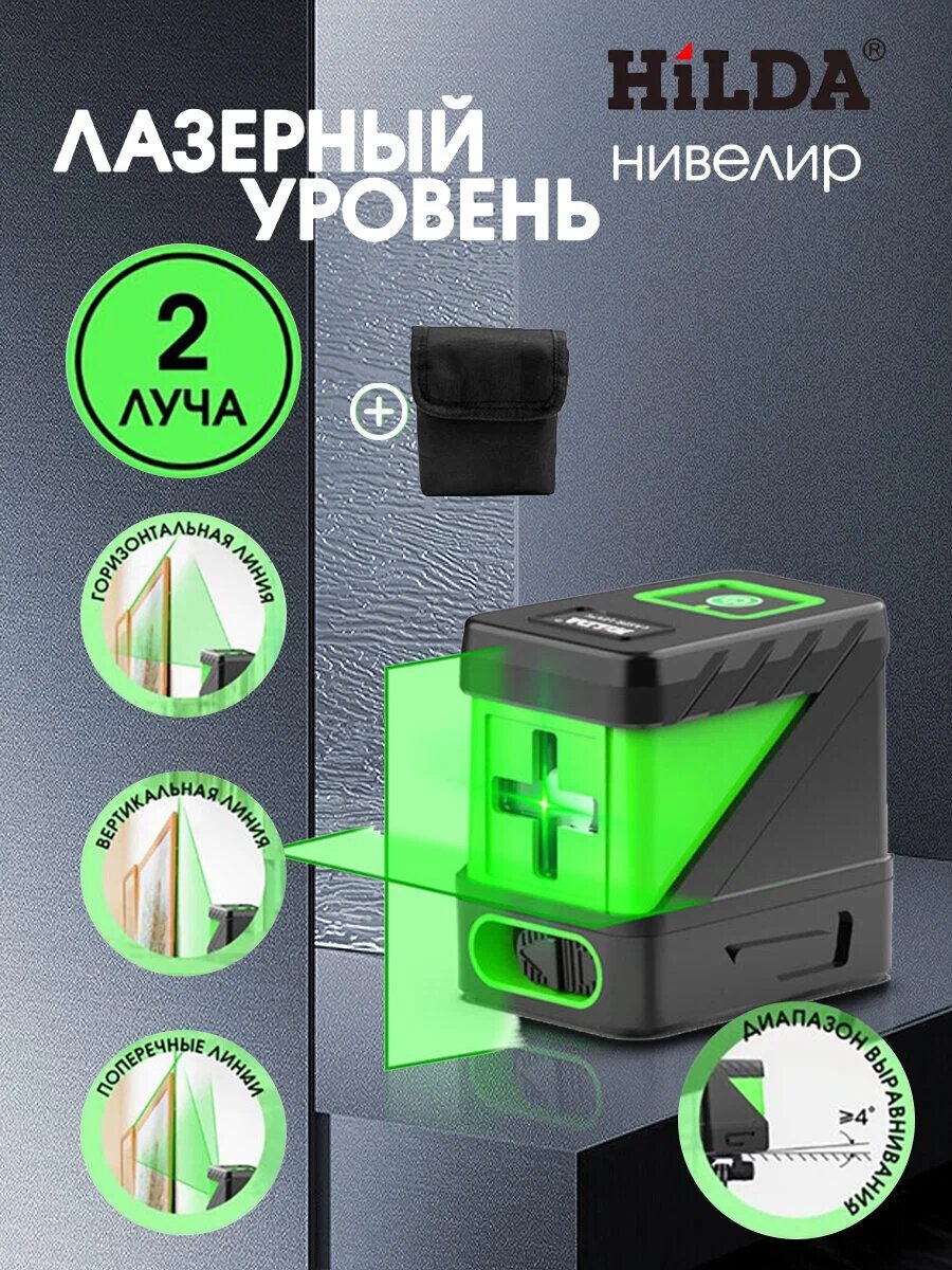Лазерный уровень (нивелир) Hilda 2 линии, зелёный луч