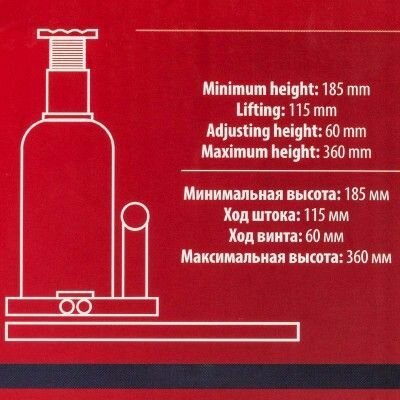 FORCEKRAFT Домкрат гидравлический бутылочный, 5т (с предохранительным клапаном, минимальная высота: 185 мм, ход штока: 115 мм, ход винта: 60 мм, максимальная выс FK-T90504(DS)(26574)