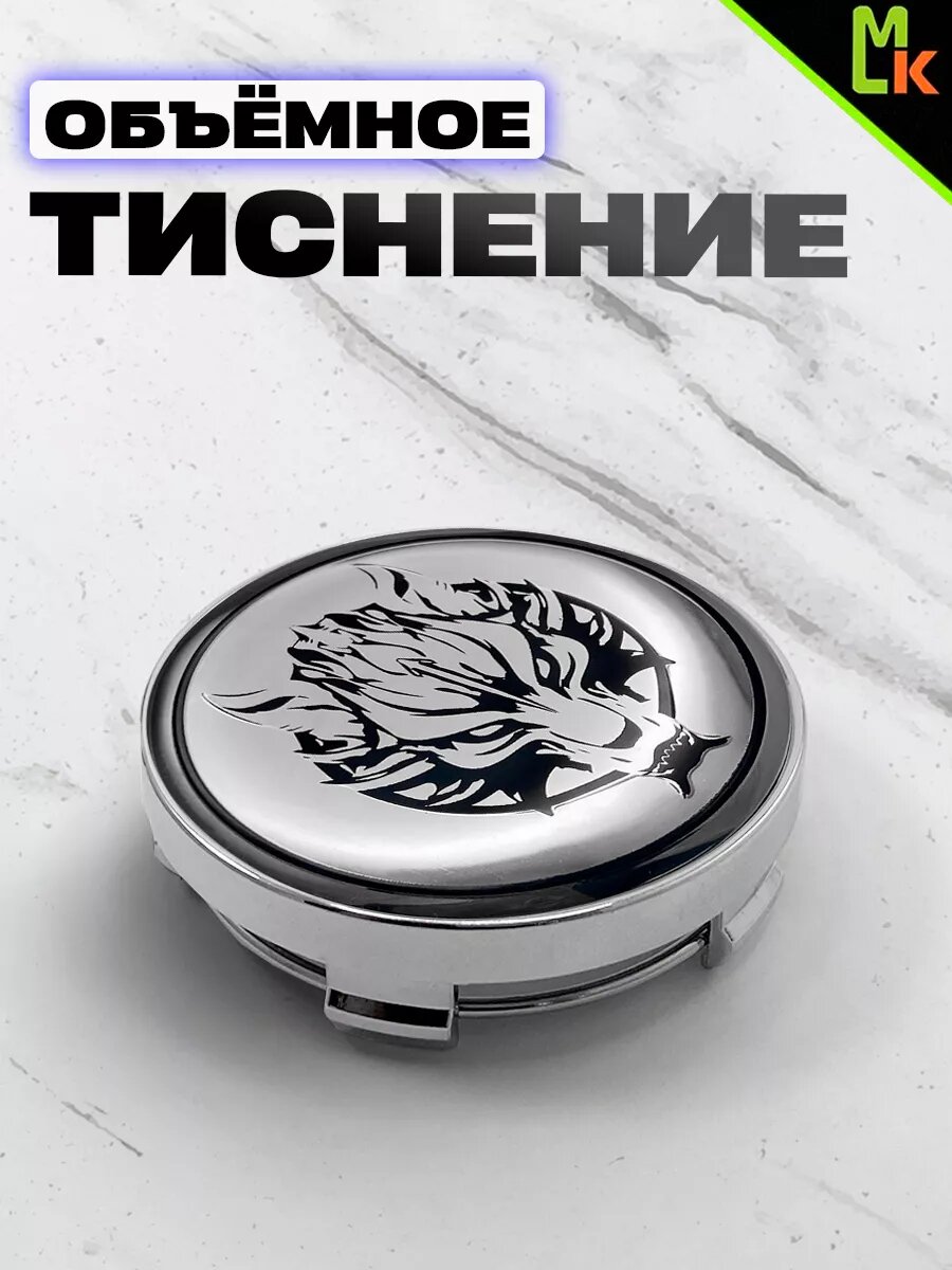 Колпачки на ступицу колеса 4 шт, автоколпак, заглушка диска, колпачки в автомобильные диски, с эмблемой "Волк хром" посадочный диаметр 58 мм
