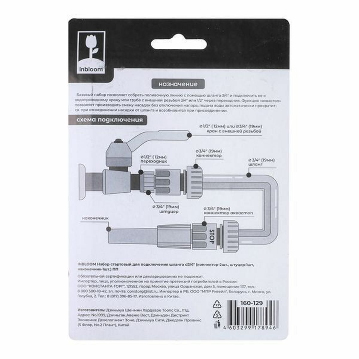 Стартовый набор для подключения шланга 3/4 Inbloom 160-129