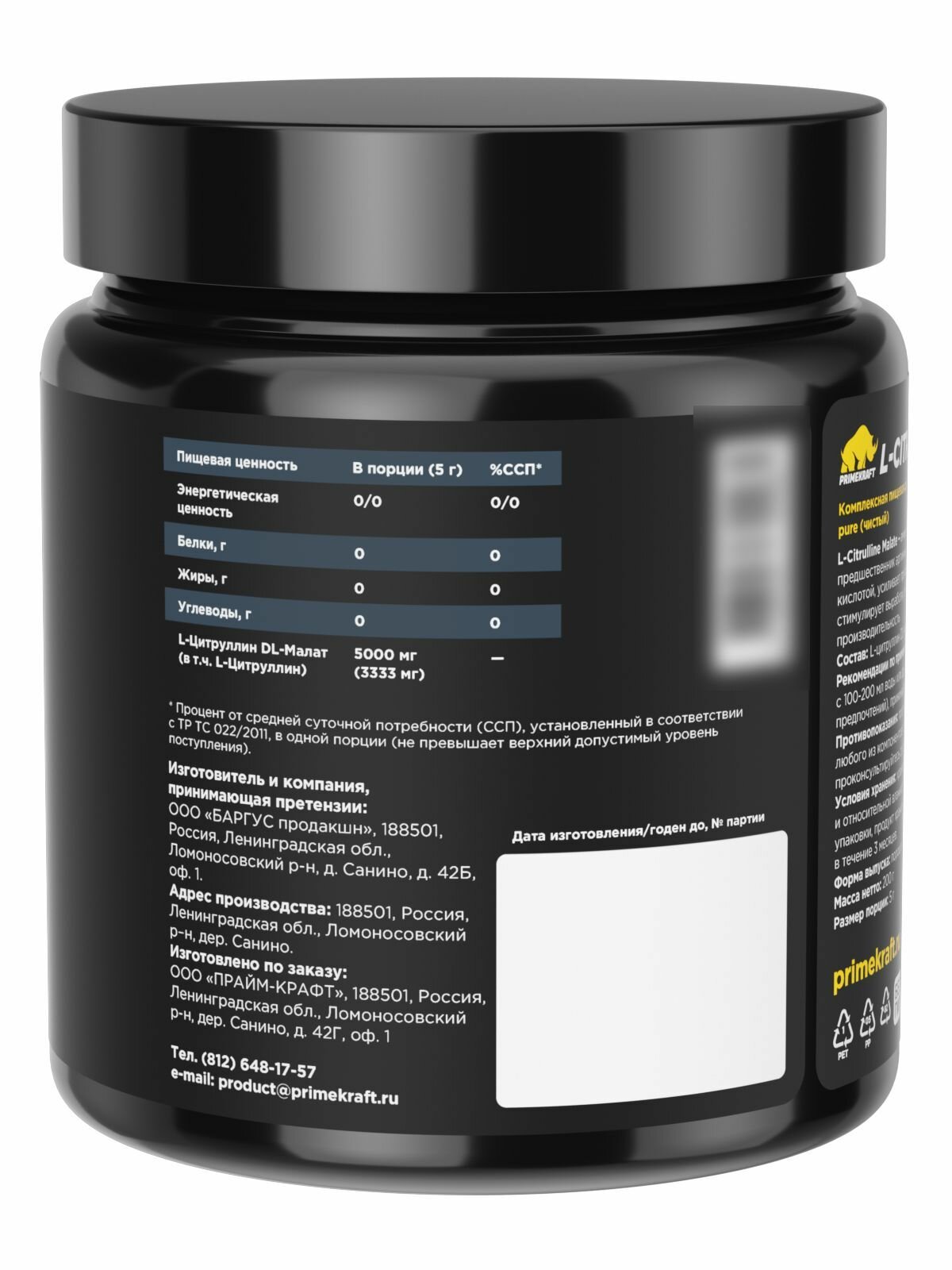Купить Аминокислоты PRIMEKRAFT L-Citrulline Malate Цитруллин малат / 200 гр (без вкуса) / 40 порций