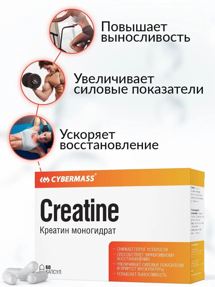 Креатин моногидрат CYBERMASS Creatine Monohydrate (блистеры, 60 капсул) интересное: