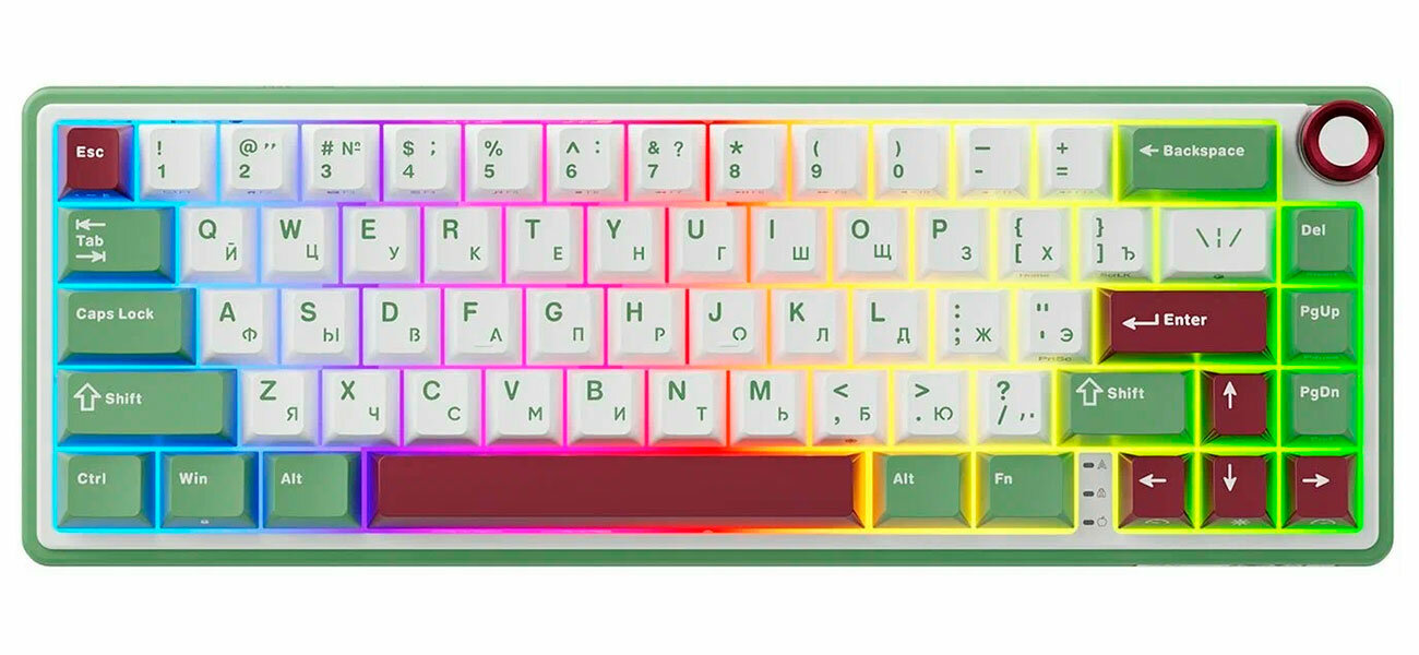 СохранитьПроводная механическая клавиатура Royal Kludge RK65 цвет Green Sand, RGB, hot swap, кейкапы без подсветки символов, тактильные свитчи (RK Brown) интересное: