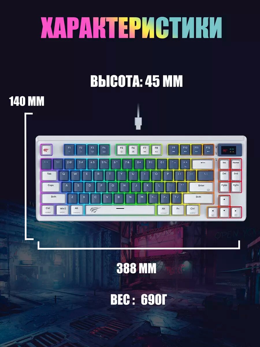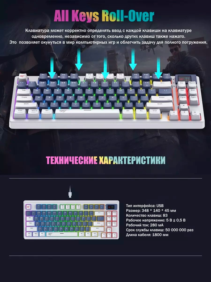 Клавиатура игровая Havit KB884L, Content Red, RGB-подсветка, 83 клавиши интересное: