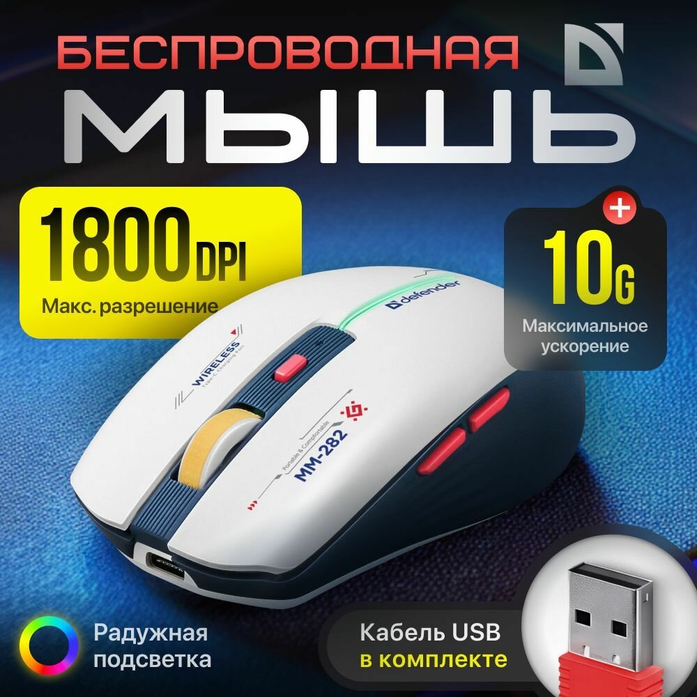 Купить Мышь Defender Dila MM-282, белый/синий (52282) оптический, 1800 dpi, радиоканал