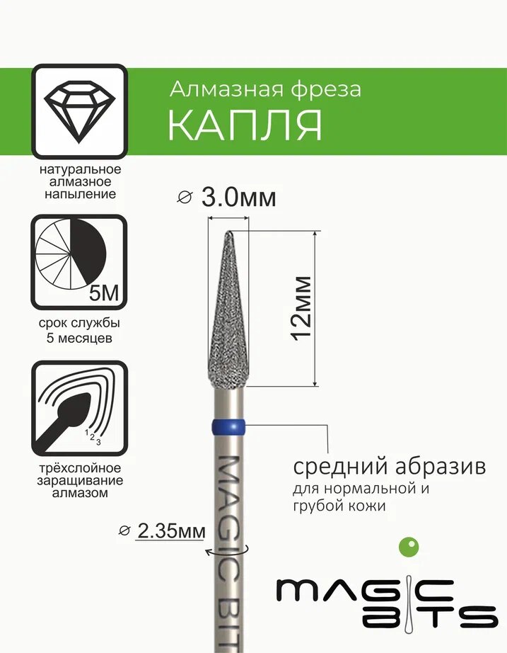 Magic Bits Набор фрез Алмазная капля педикюрная с натуральным напылением средне-мягкого абразива