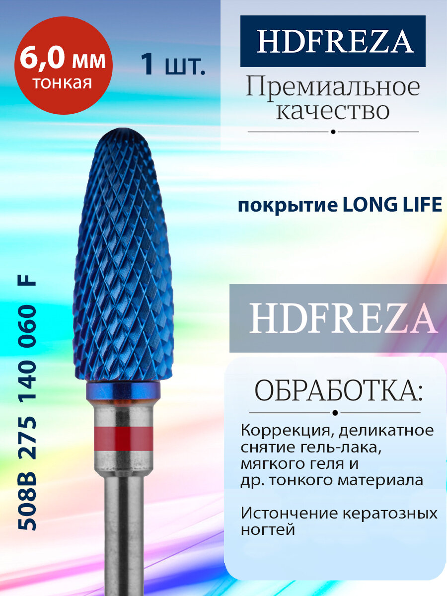 Фреза для маникюра и педикюра HDFREZA твердосплавная для снятия покрытия 508B 275 190 060 M Средняя синяя конус d-6.0