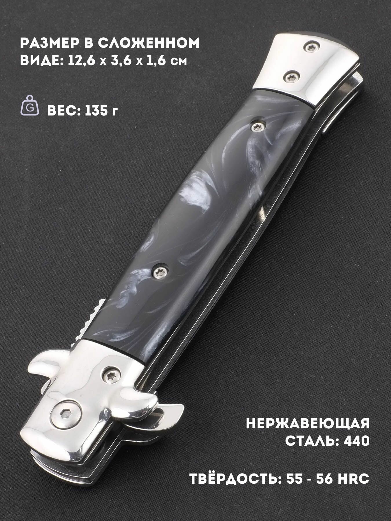 | Особенности | автоматический выброс клинка / возможность использования одной рукой |