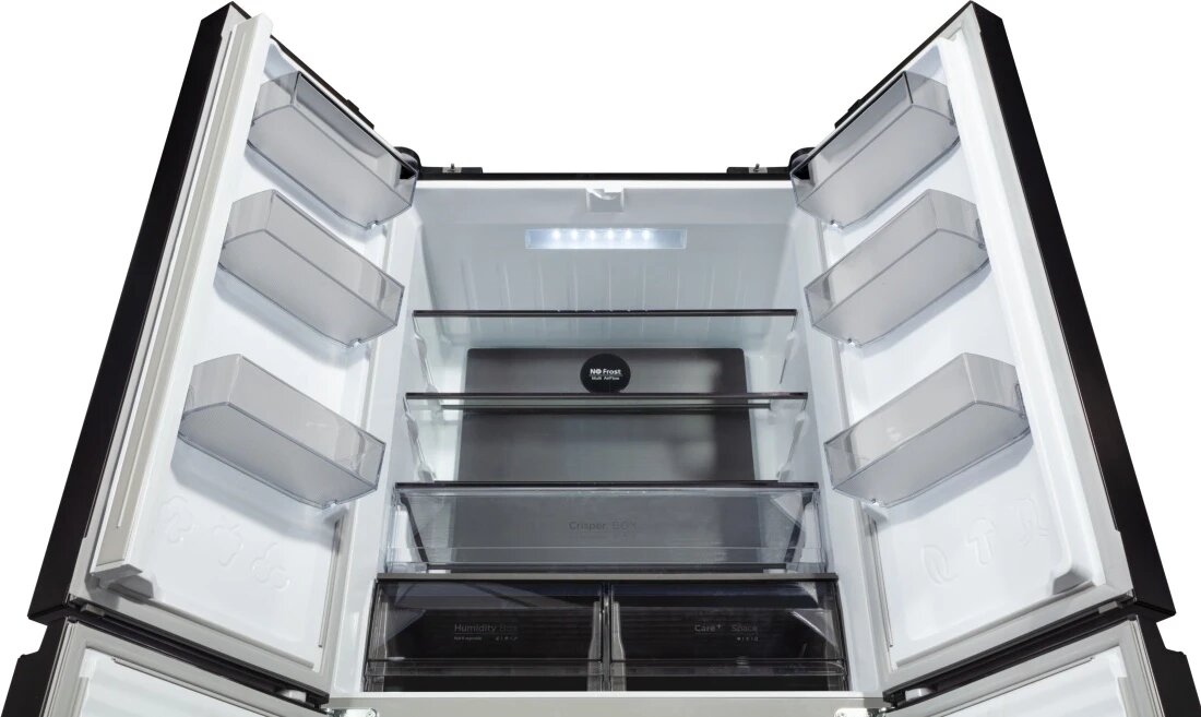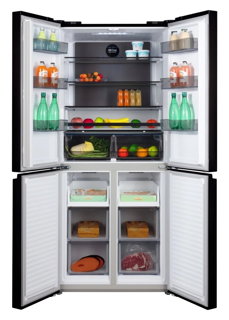 Холодильник NORDFROST RFQ 450 NFGB, 4 двери, инвертор, общий объем 451 л, индивидуальная зона свежести и контроля влажности, цвет «черное стекло»