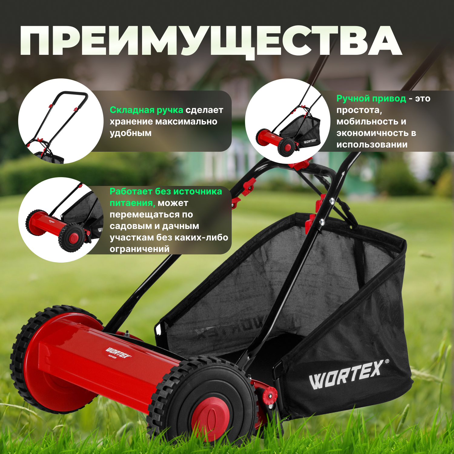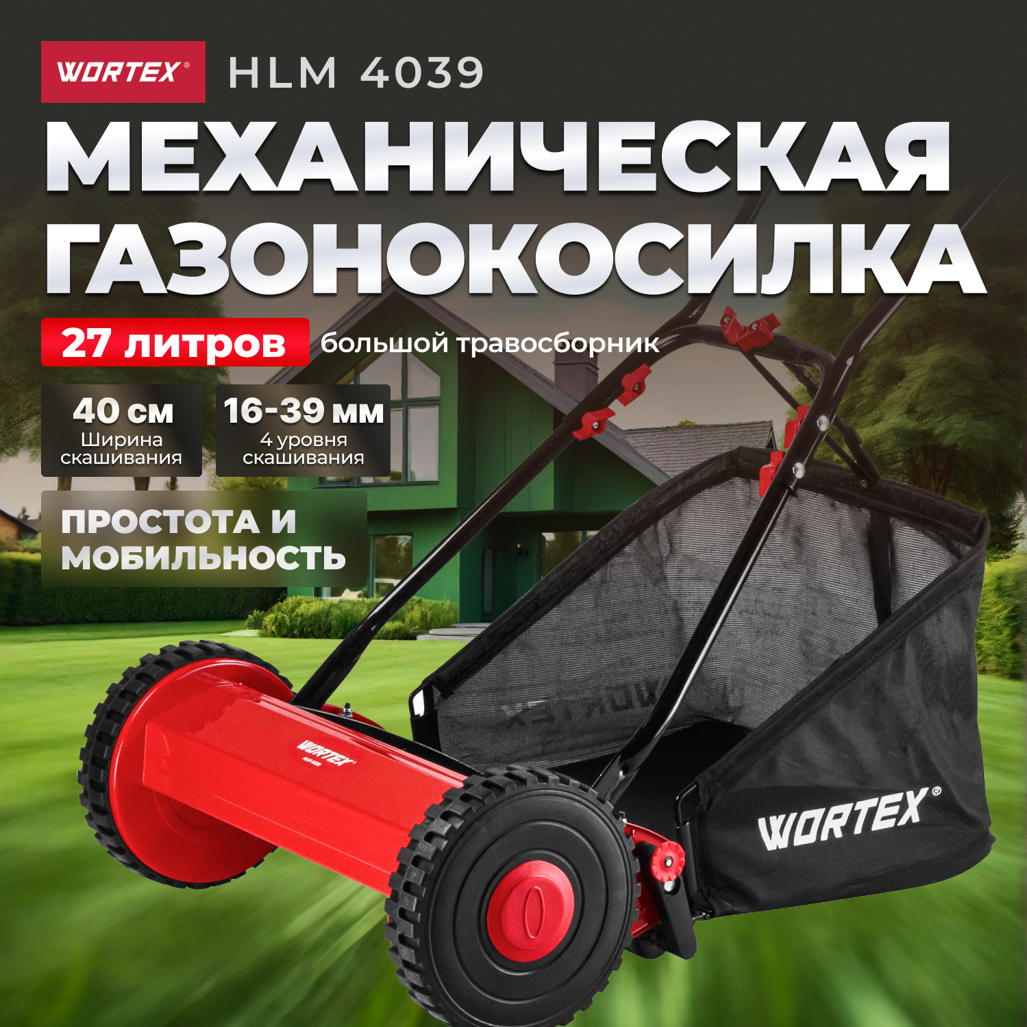 Газонокосилка механическая WORTEX HLM 4039, ширина обработки 40 см, с травосборником 27 л. интересное:
