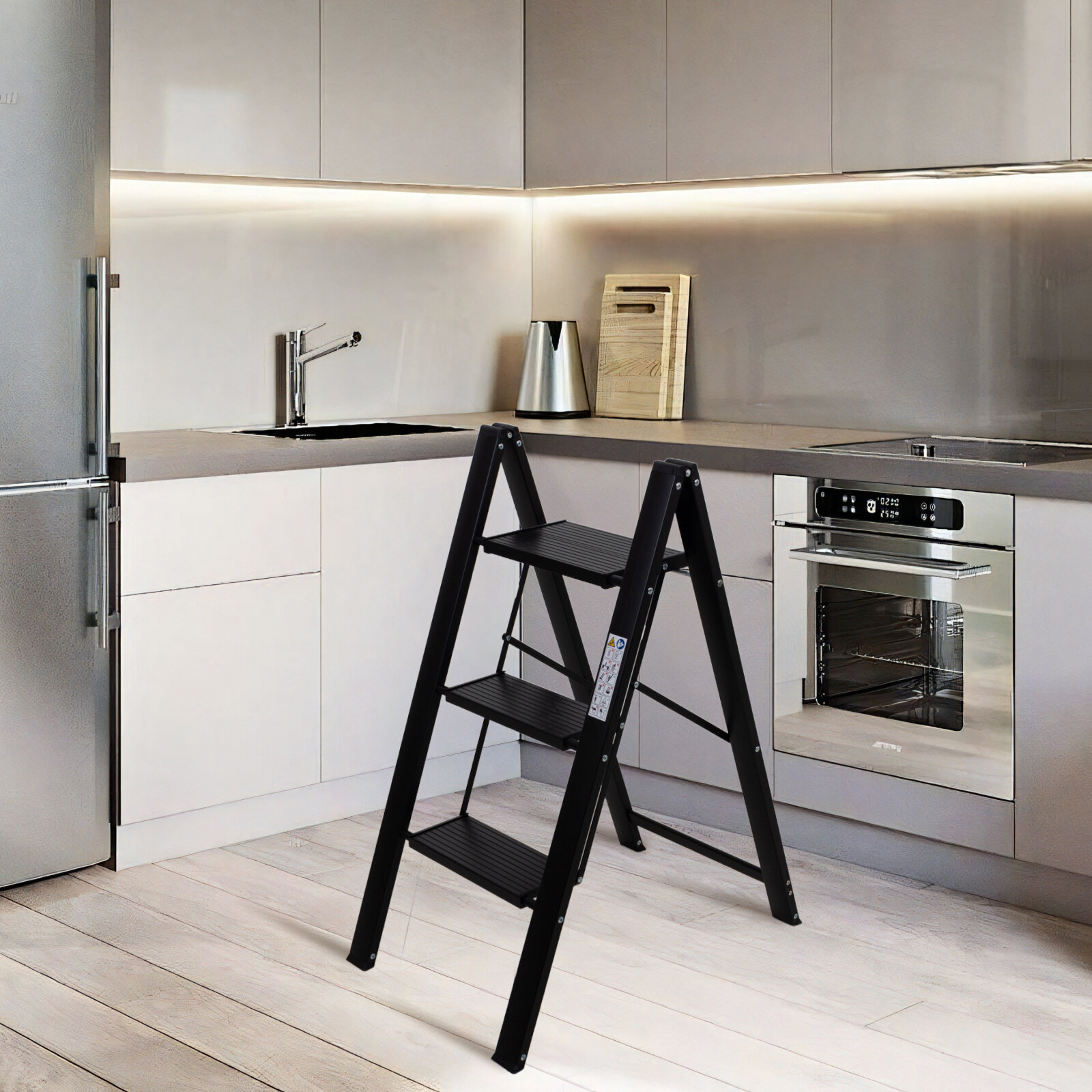 Купить Стремянка складная 3 х ступенчатая Joy Home Leonardo с эффектом антискольжения черная