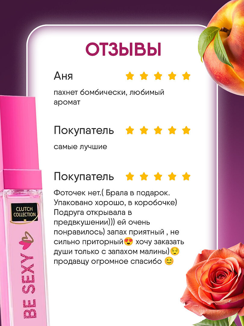 Clutch Collection Be Sexy духи женские миниатюра, фруктовый, цветочный, парфюмерия женская, Туалетная вода пробник 14 мл интересное: