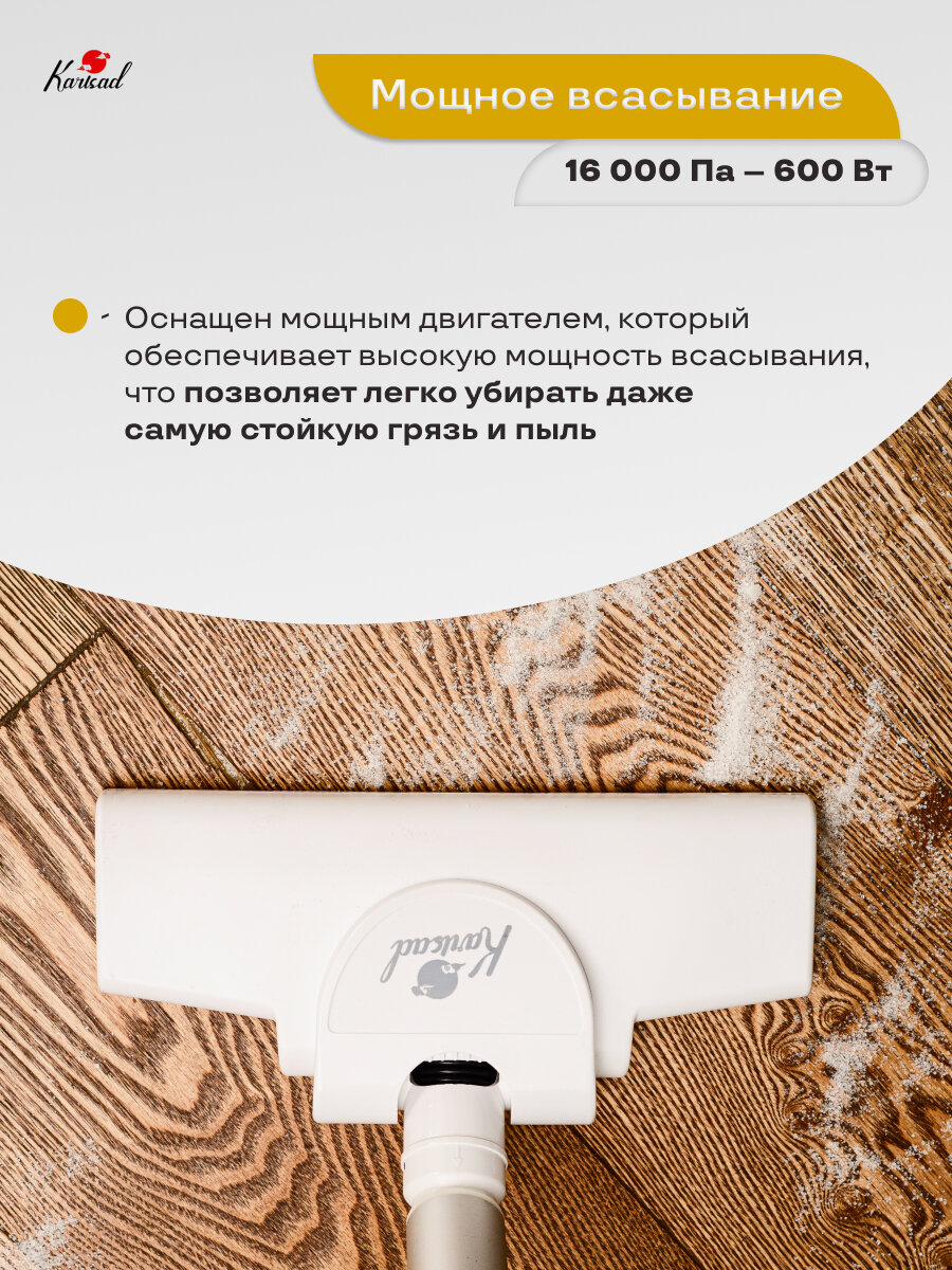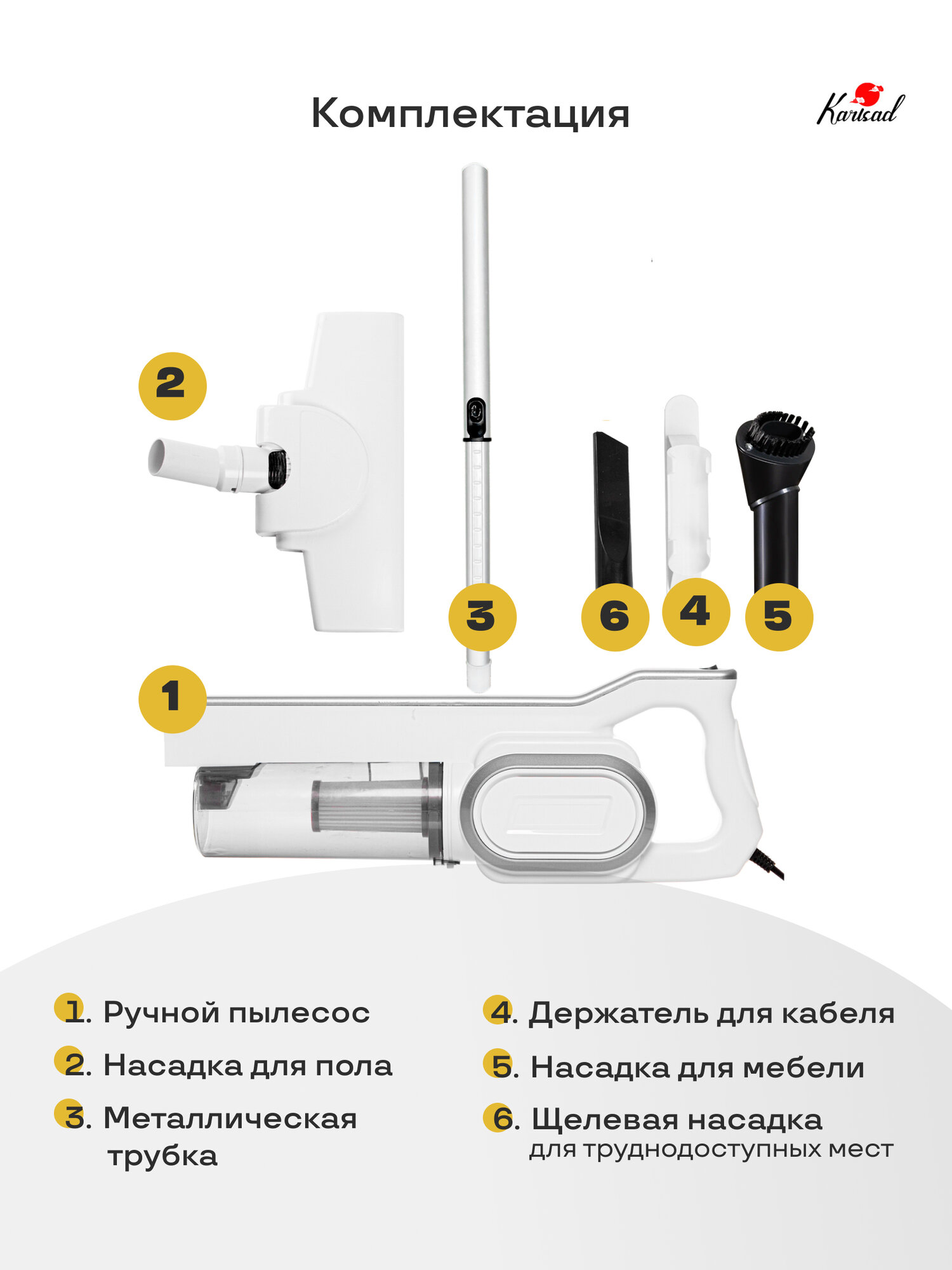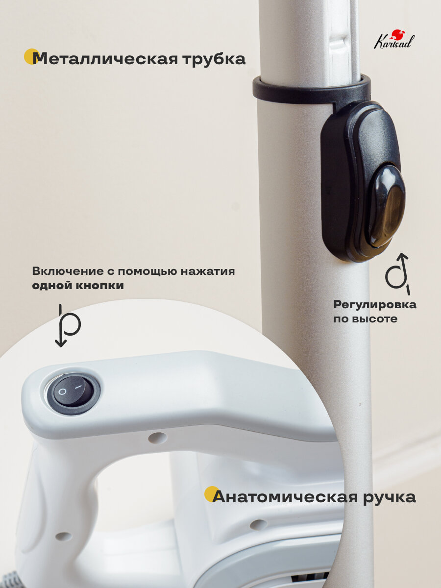 Вертикальный пылесос Karisad, 600Вт, белый/серебристый интересное: