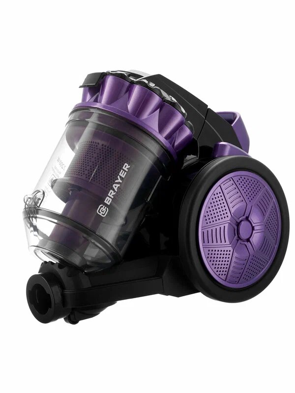 Пылесос BRAYER, фиолетовый, 2200Вт, контейнер для пыли 3л, мощность всасывания 420Вт