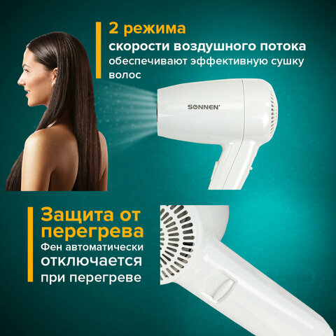 Фен для волос Sonnen настенный, HD-2101 Ultra Plus, 1300 Вт, 2 скорости, белый