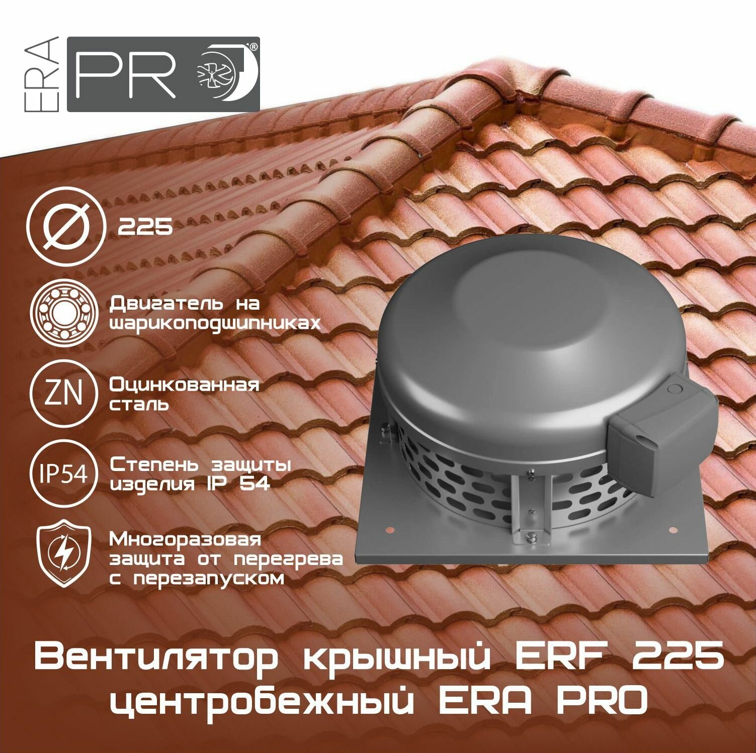 Вентилятор крышный ERF 225 центробежный ERA PRO (ERF 225) интересное: