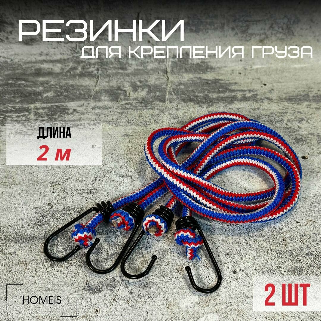 Купить Резинка крепления груза 2м х 8мм - 2 шт / Ремень эластичный для крепления багажа с металлическими крюками