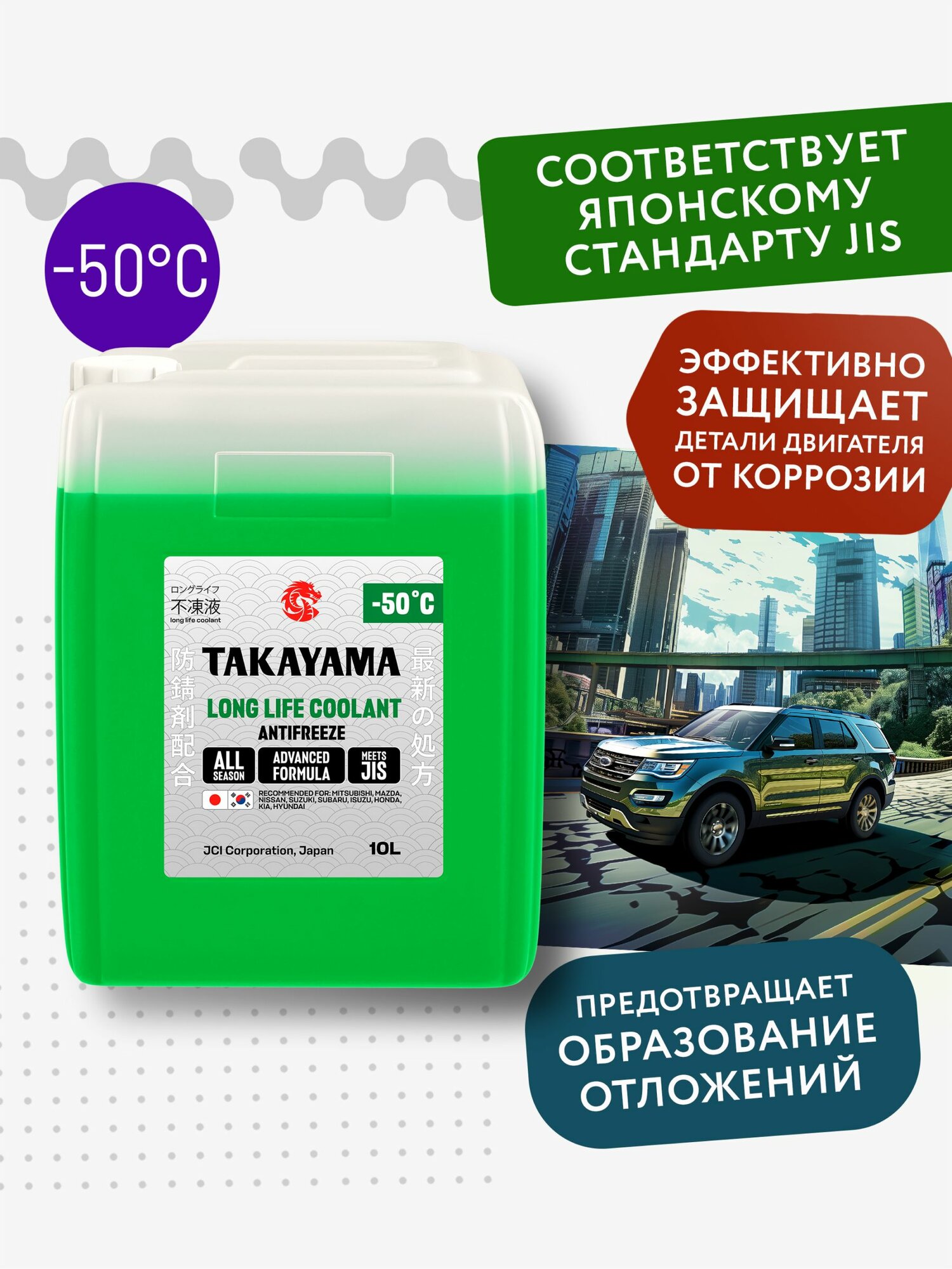 Антифриз TAKAYAMA LONG LIFE COOLANT GREEN (-50) зеленый 10 л интересное: