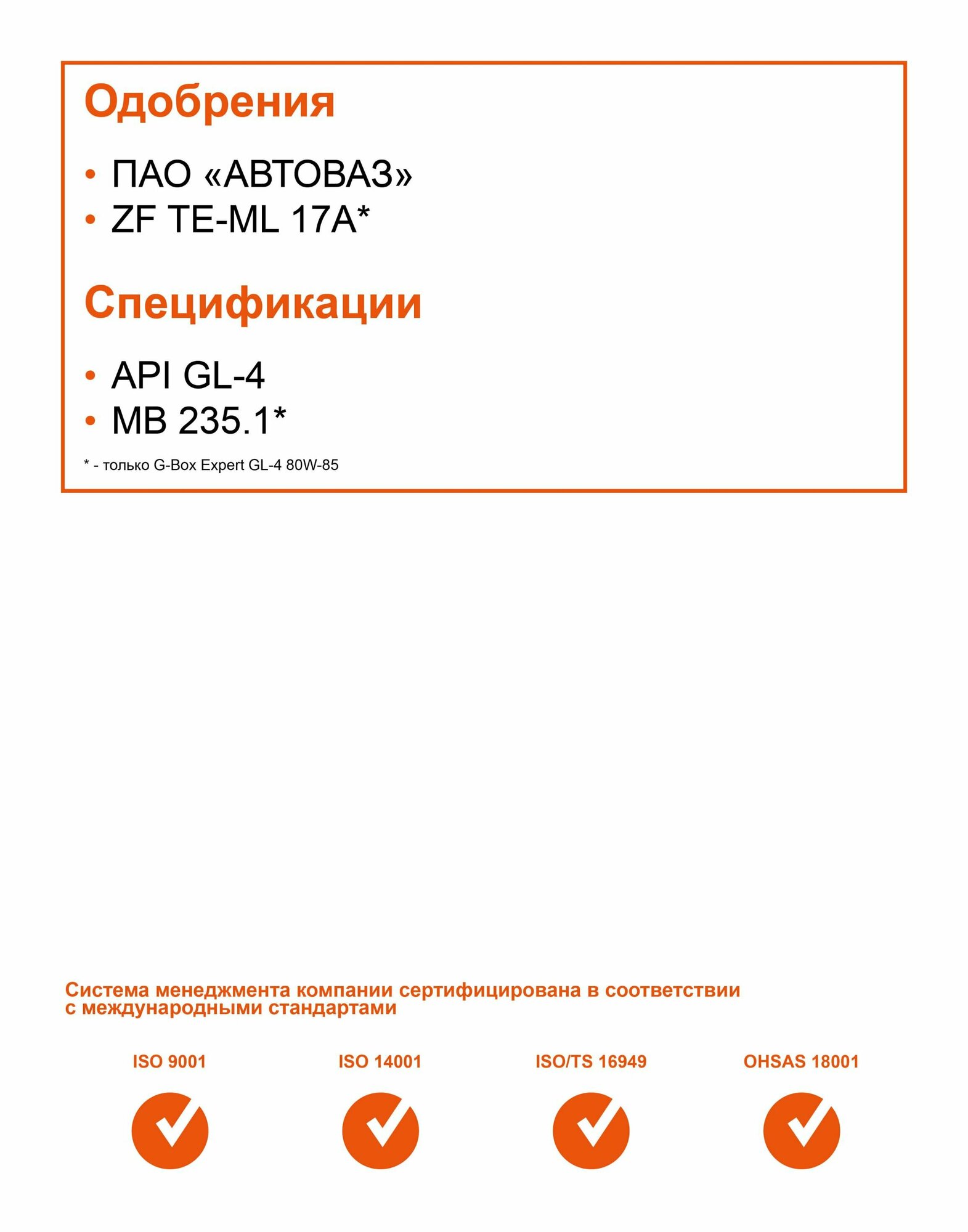 | Допуски OEM | MB 235.1 / ПАО «АвтоВАЗ» |