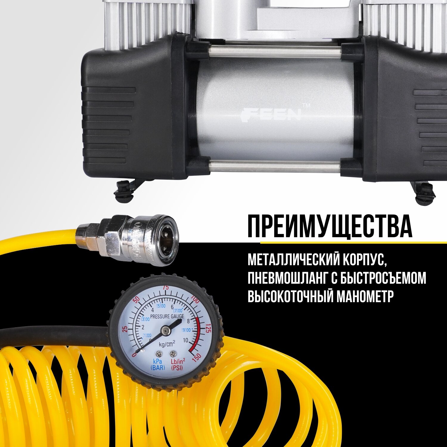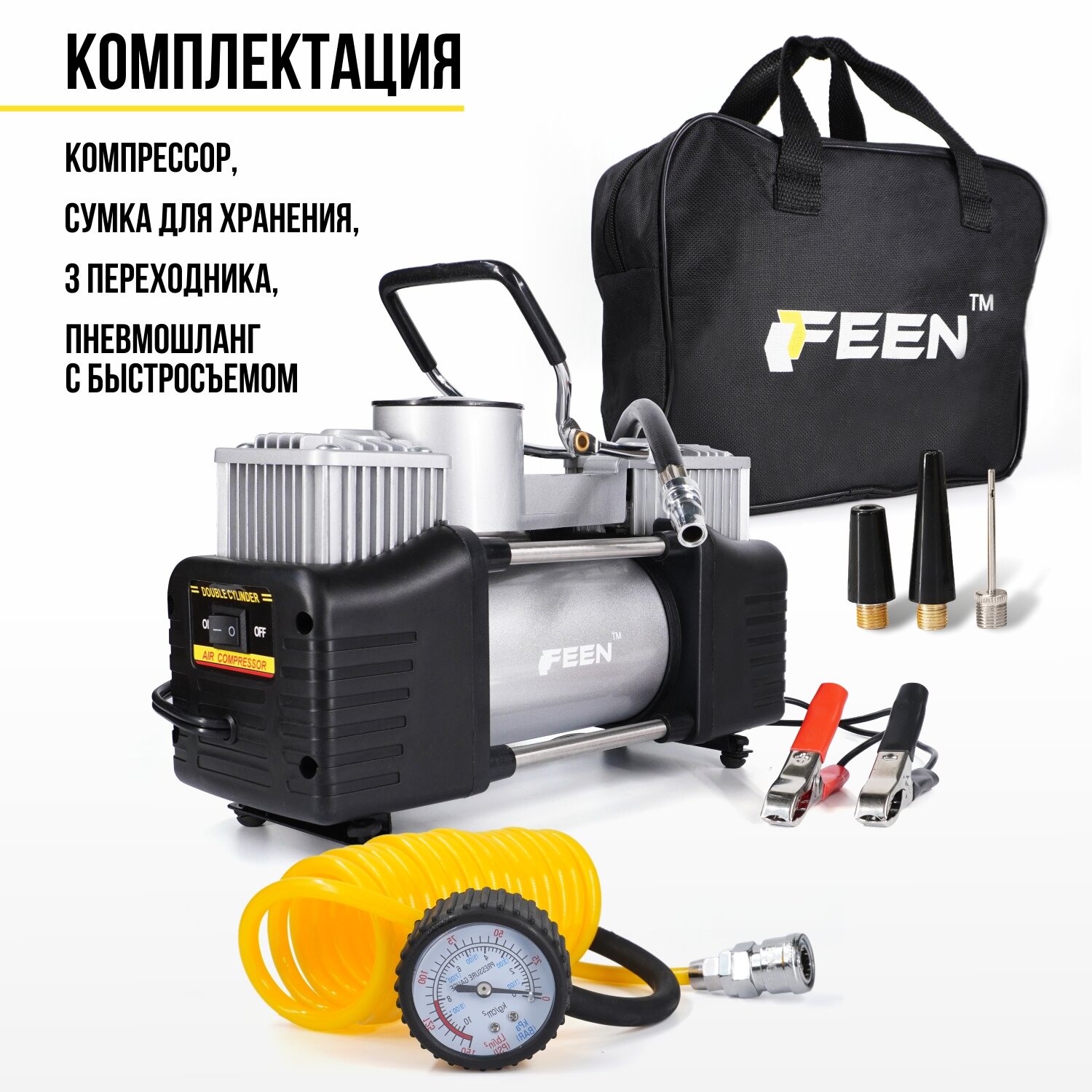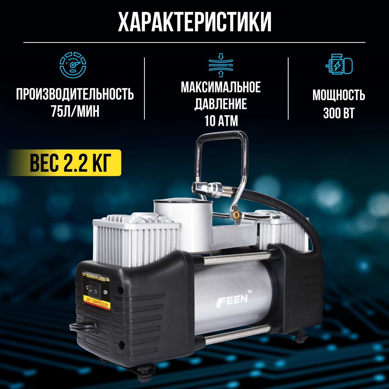 Купить Компрессор автомобильный FEEN воздушный, насос в машину от аккумулятора двухпоршневой, 75 л/ мин