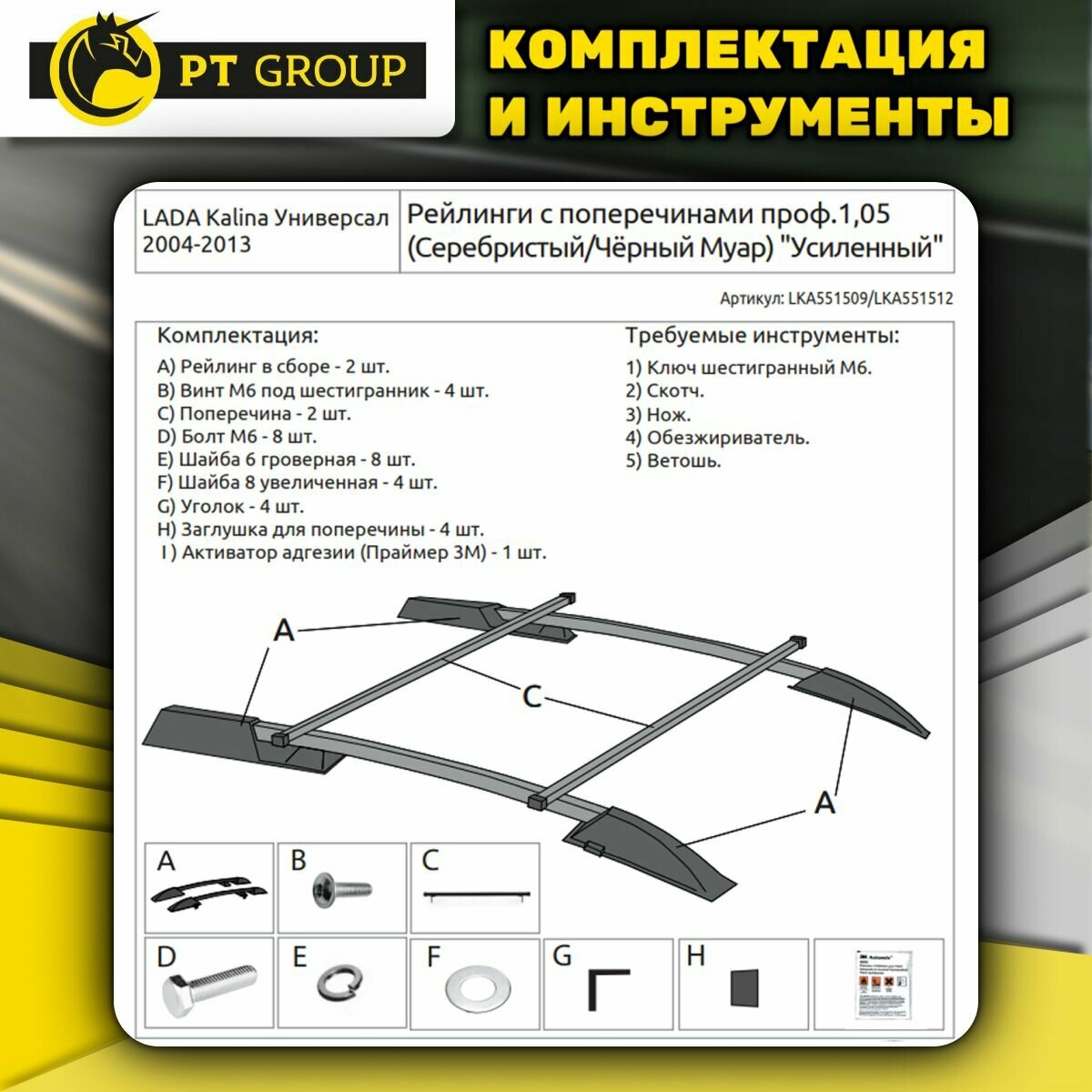 Рейлинги с попереч.проф.1,05 (Черн) (под крышу с ребром) Усилен LADA KALINA Универсал 20 PT GROUP LKA551512 интересное: