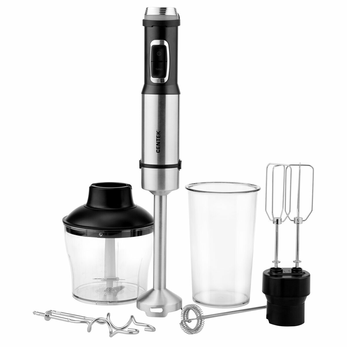 Блендер погружной CENTEK CT-1311/ черный/сталь/ 1500 Вт/ 15 скоростей/ чоппер/ венчик/ крюк/ капучинатор