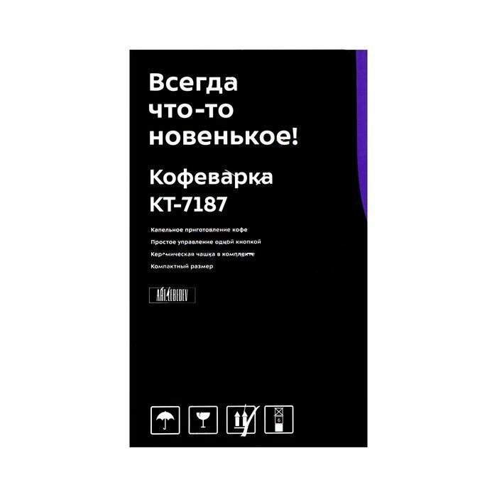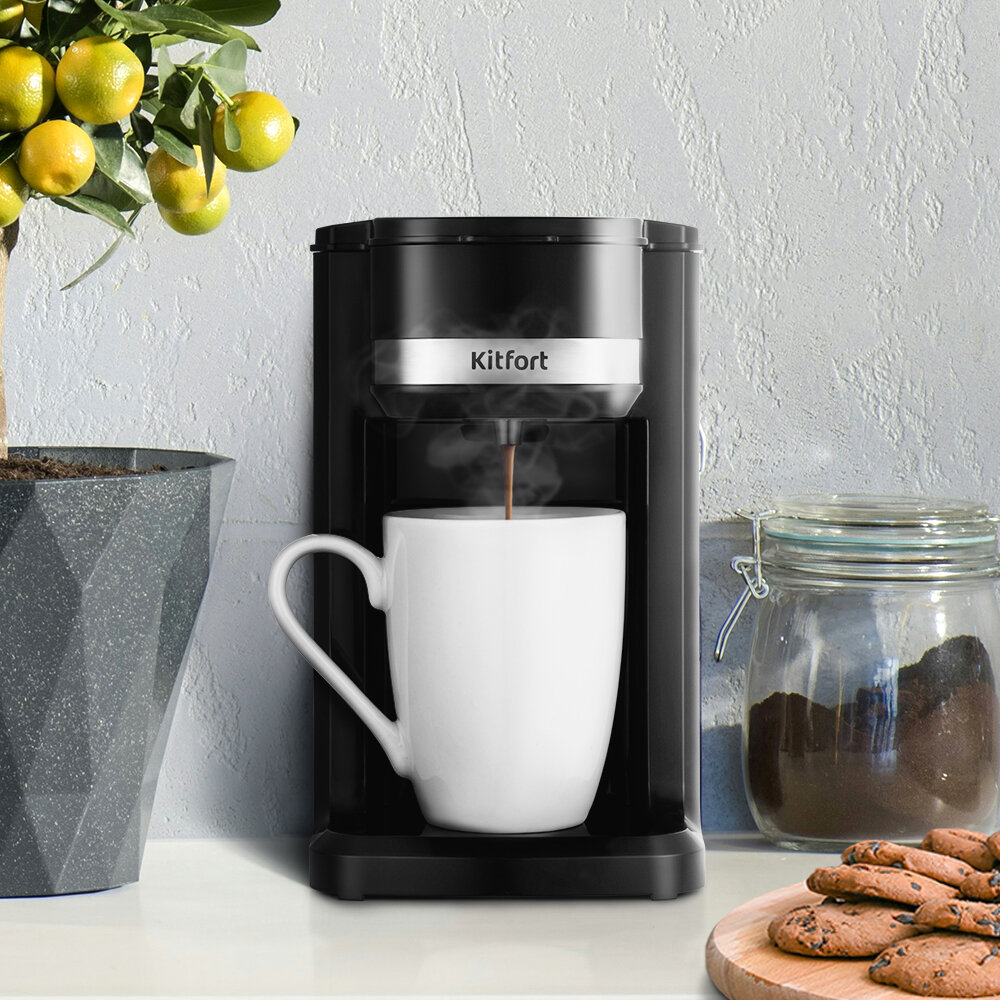 Кофеварка Kitfort КТ-7187, капельная, 350 Вт, 0.15 л, чёрная