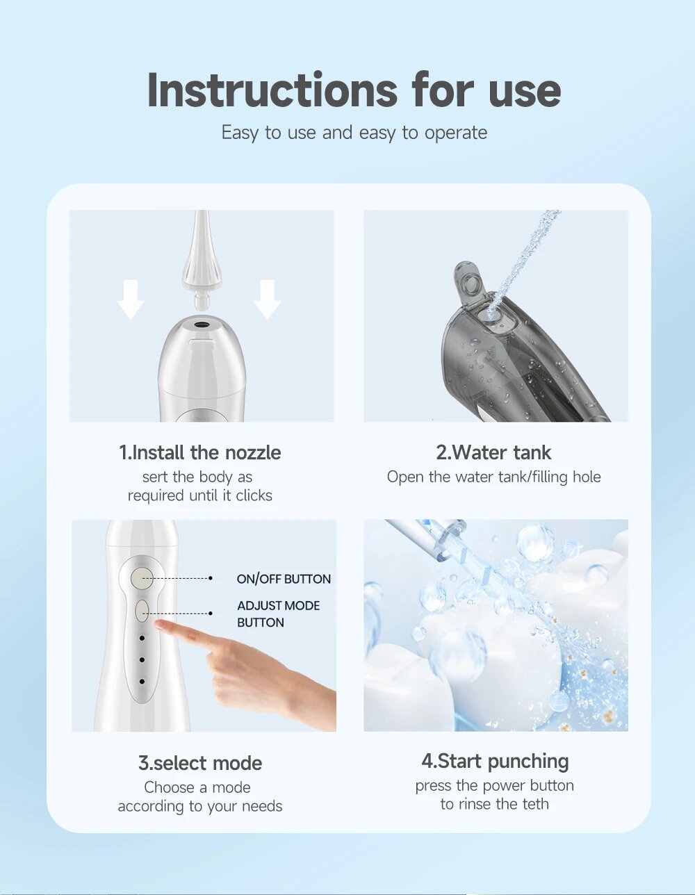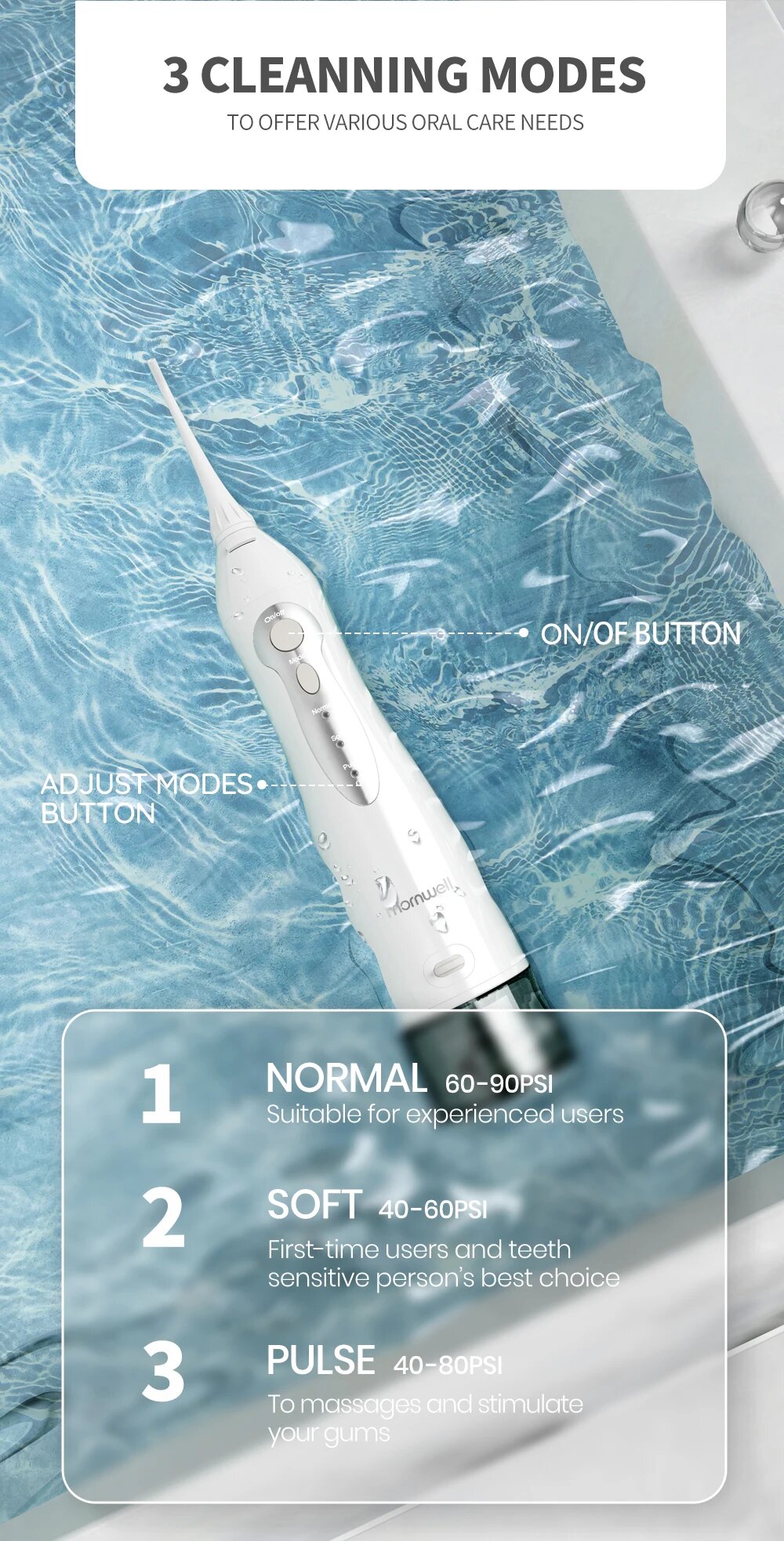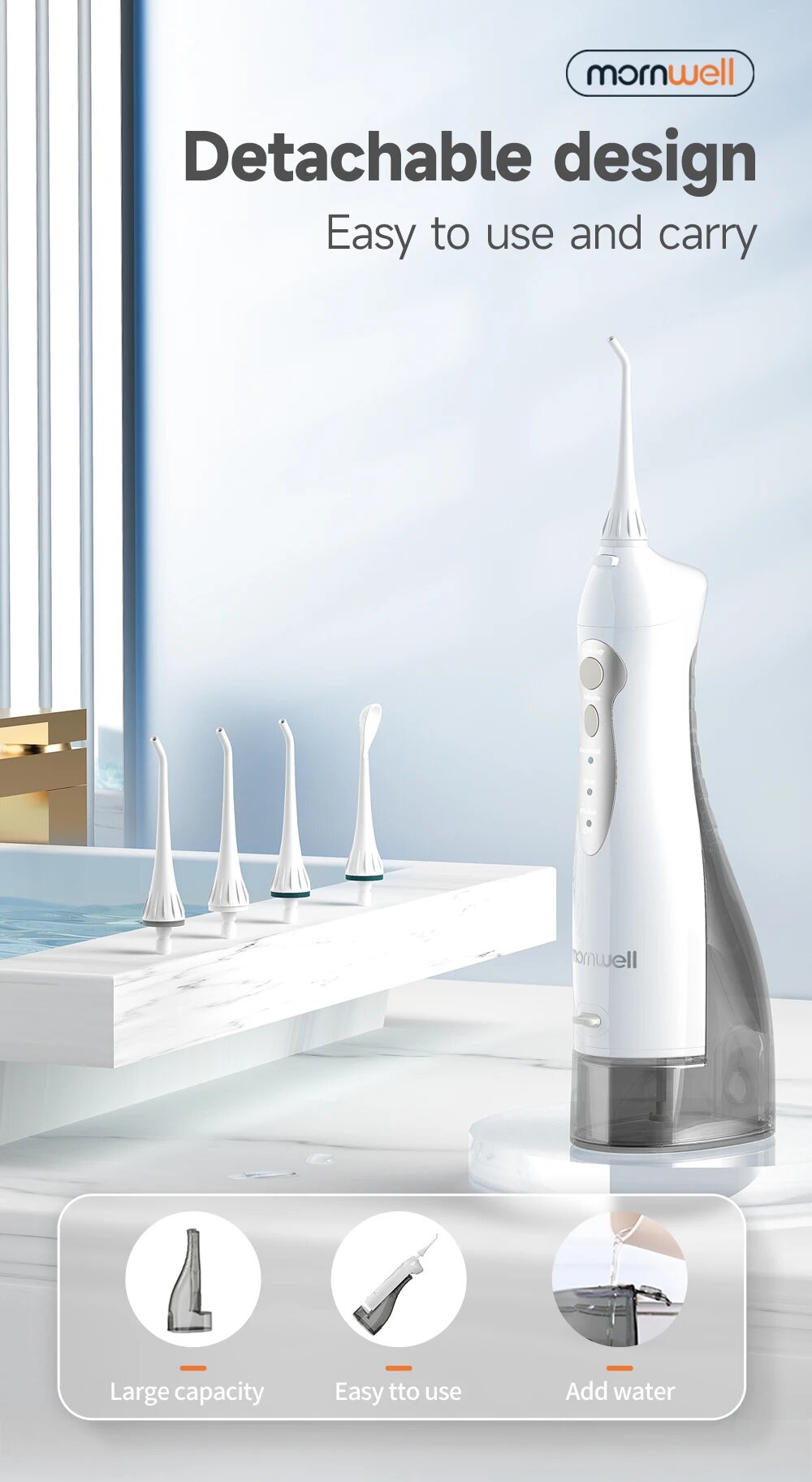 Портативный ирригатор для гигиены полости рта + 4 насадки и 3 режима Mornwell D52