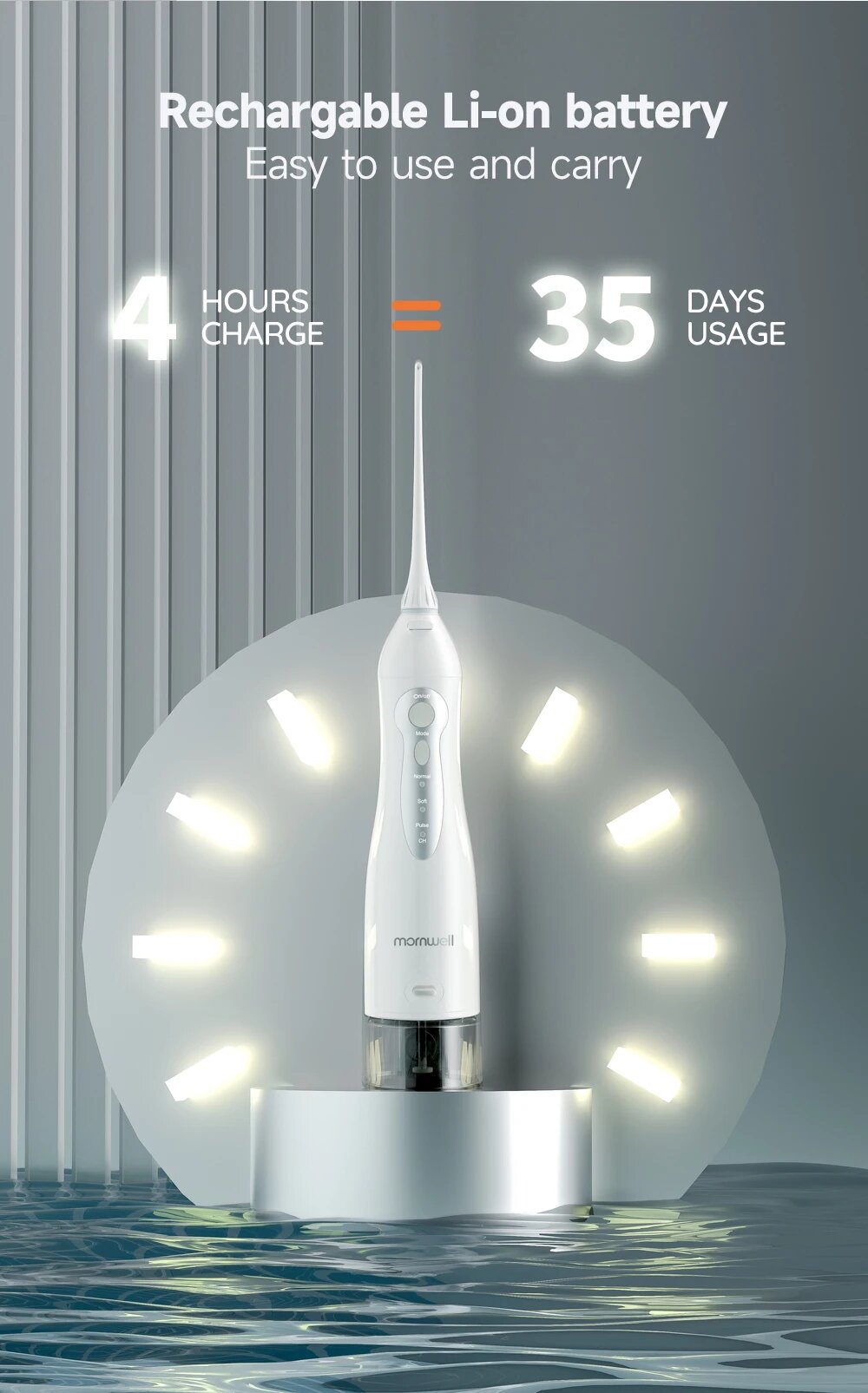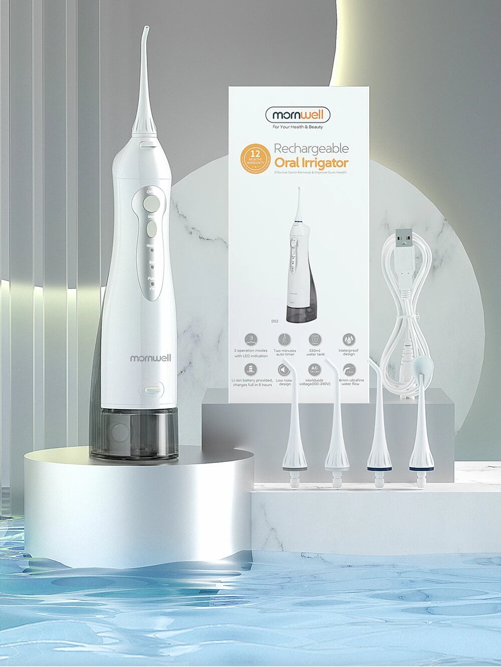Ирригатор для полости рта Mornwell D52, аккумуляторный, USB, 300 мл интересное: