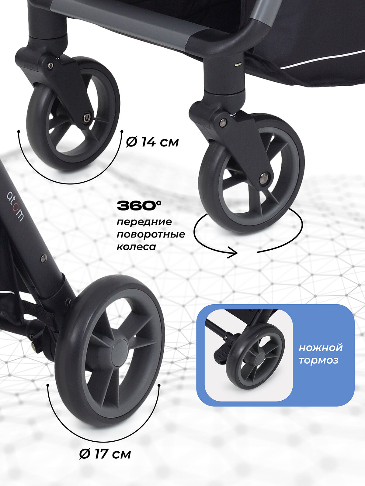 | Колеса | 4 шт., EVA, 14-17 см |