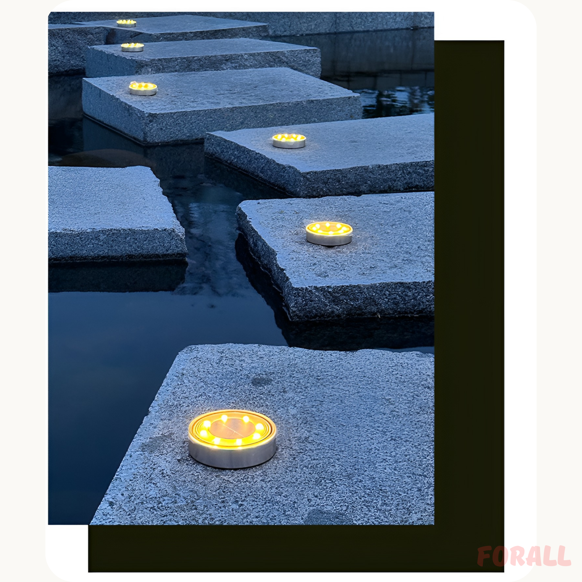 Набор садовых уличных светильников на солнечной батарее ForAll, 6 LED, теплый свет, влагозащищенные, для ступеней и дорожек, 4 шт