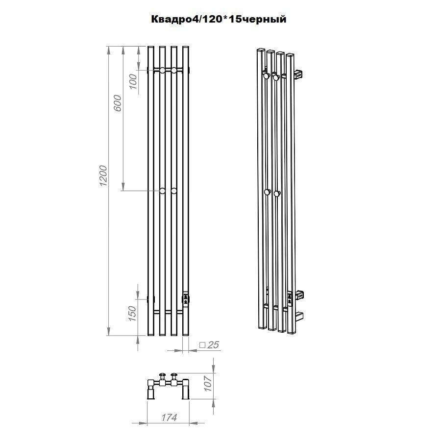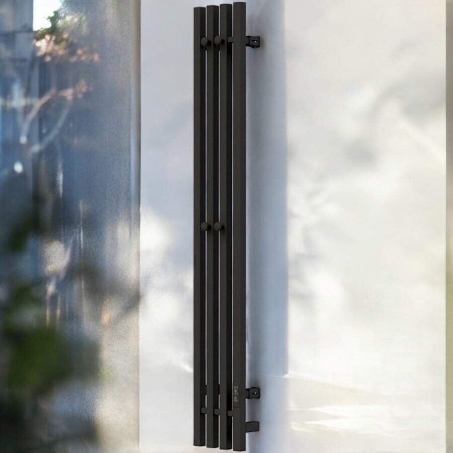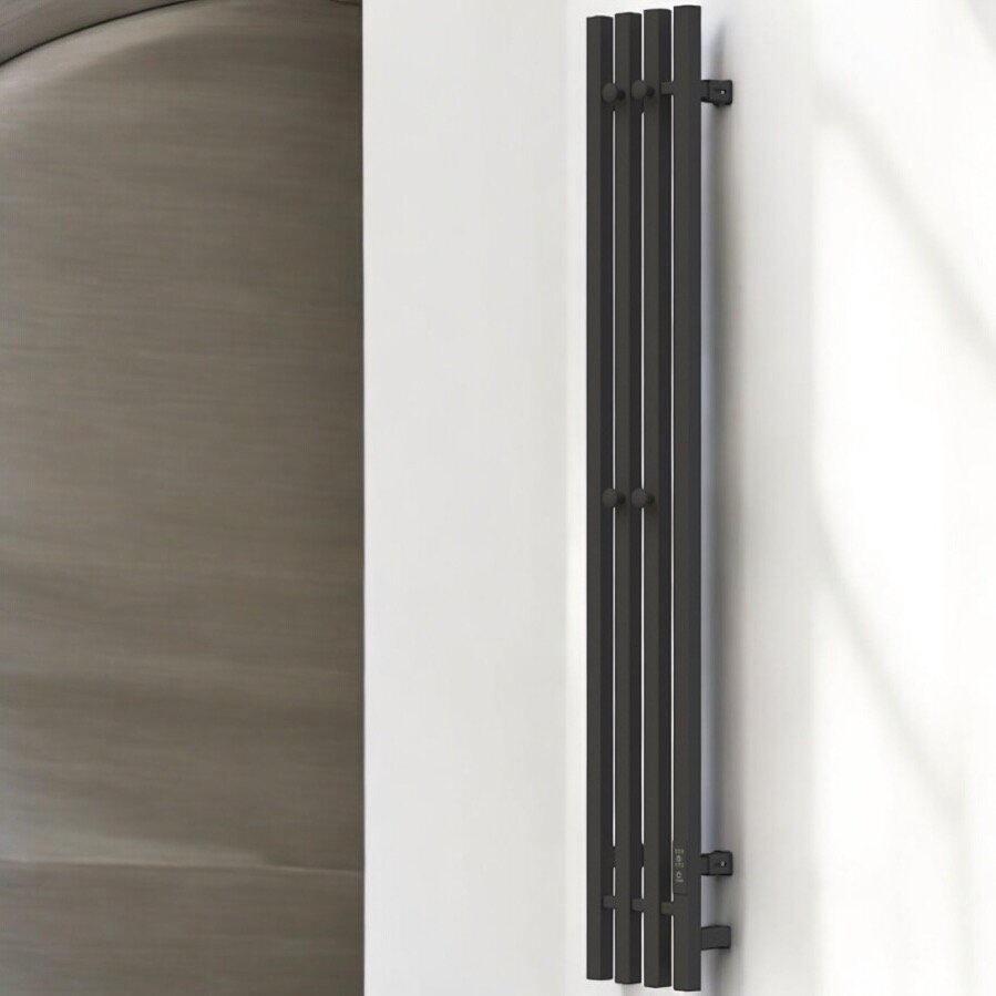 Полотенцесушитель электрический TermoPrime 1200*2050мм черный 4 крючка, 4 секции подключение справа интересное: