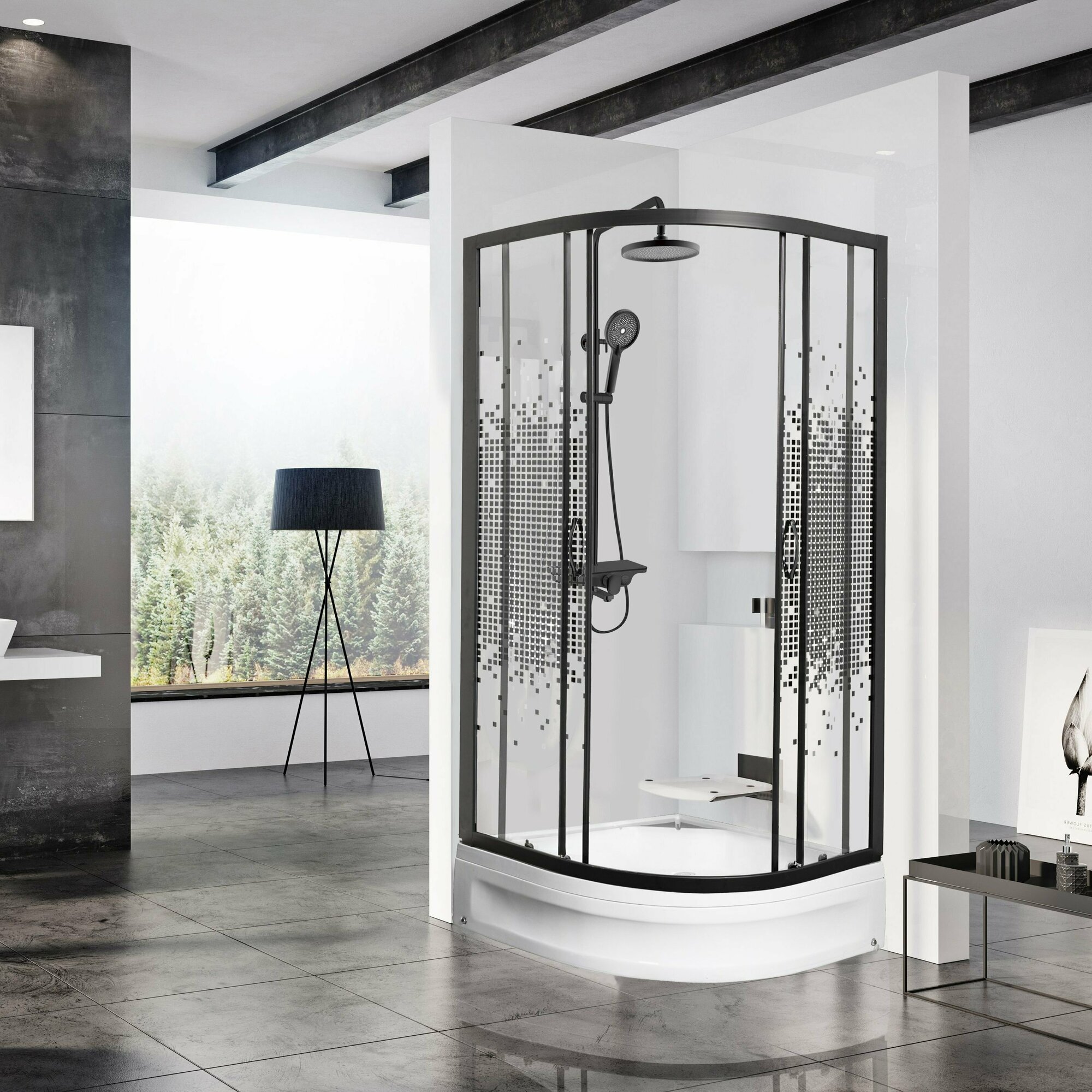 Купить Душевой уголок Мономах 70x70 ДУ 70/180 МЗ BL без поддона, стекло с рисунком, профиль черный