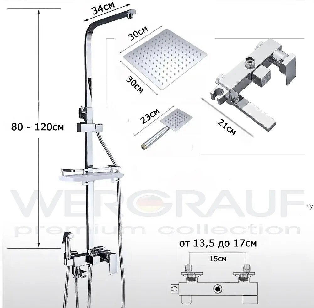 Душевая система Wergrauf 4S-30B-L150 с тропическим душем удлиненная